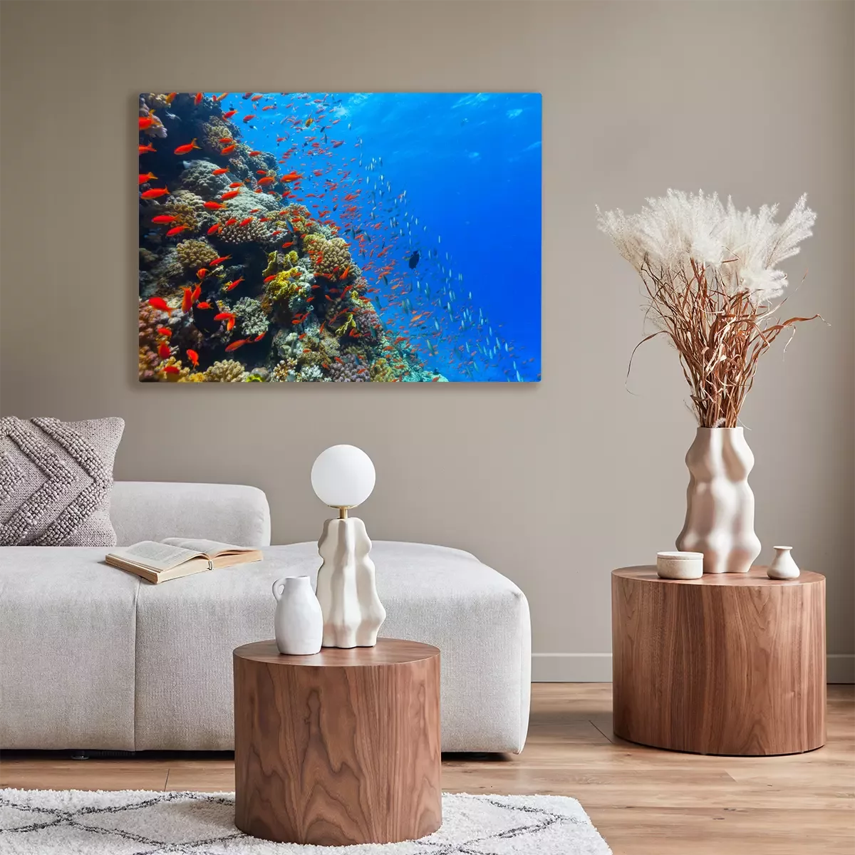 De print wordt aangebracht op hoogwaardig canvas dat op een schildersweefgetouw (spieraam) wordt gespannen. Omdat de print de zijranden bedekt, hoeft het ontwerp niet met een extra kader te worden omlijst. Wij raden ook composities aan die uit meerdere foto's bestaan en zo een coherente compositie vormen.