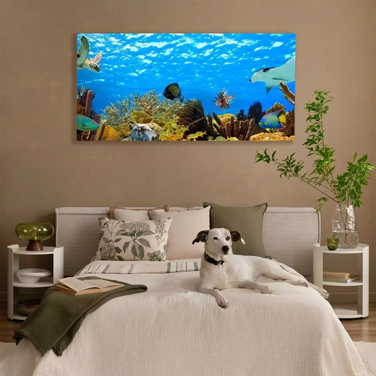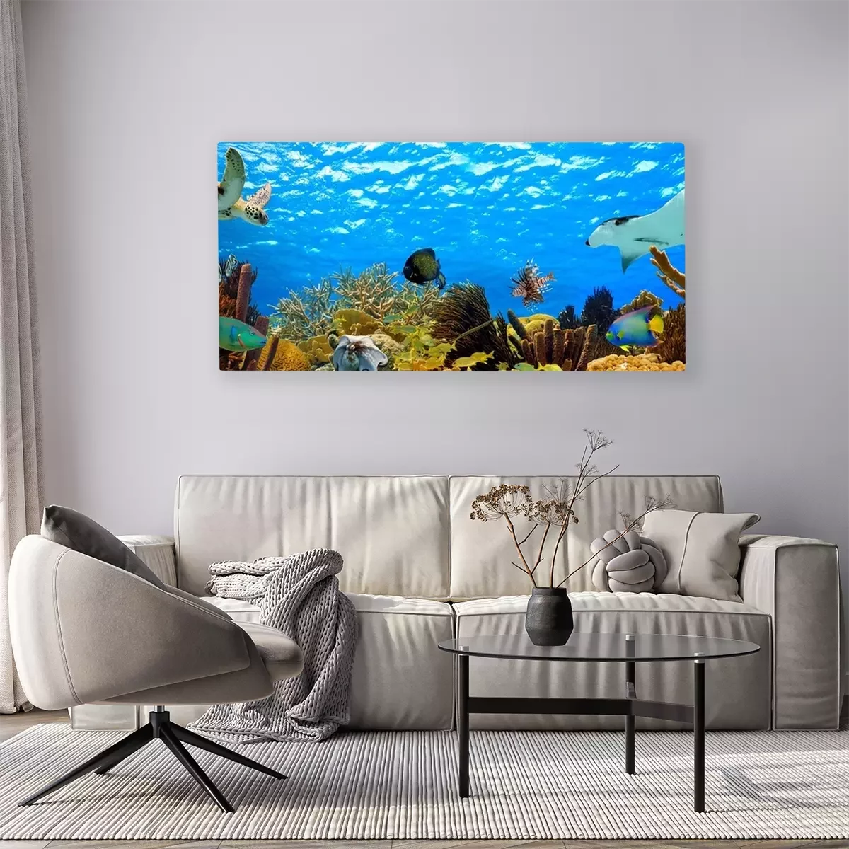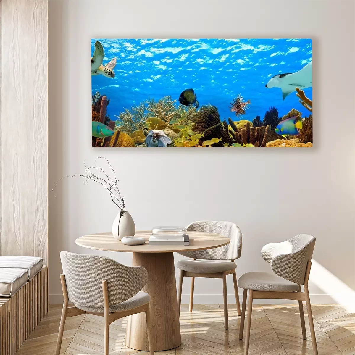 Canvas: Onderwater panorama van een tropische rif in de caribbean