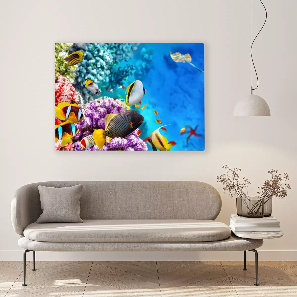 Canvas: Onderwaterwereld met koralen en tropische vissen.