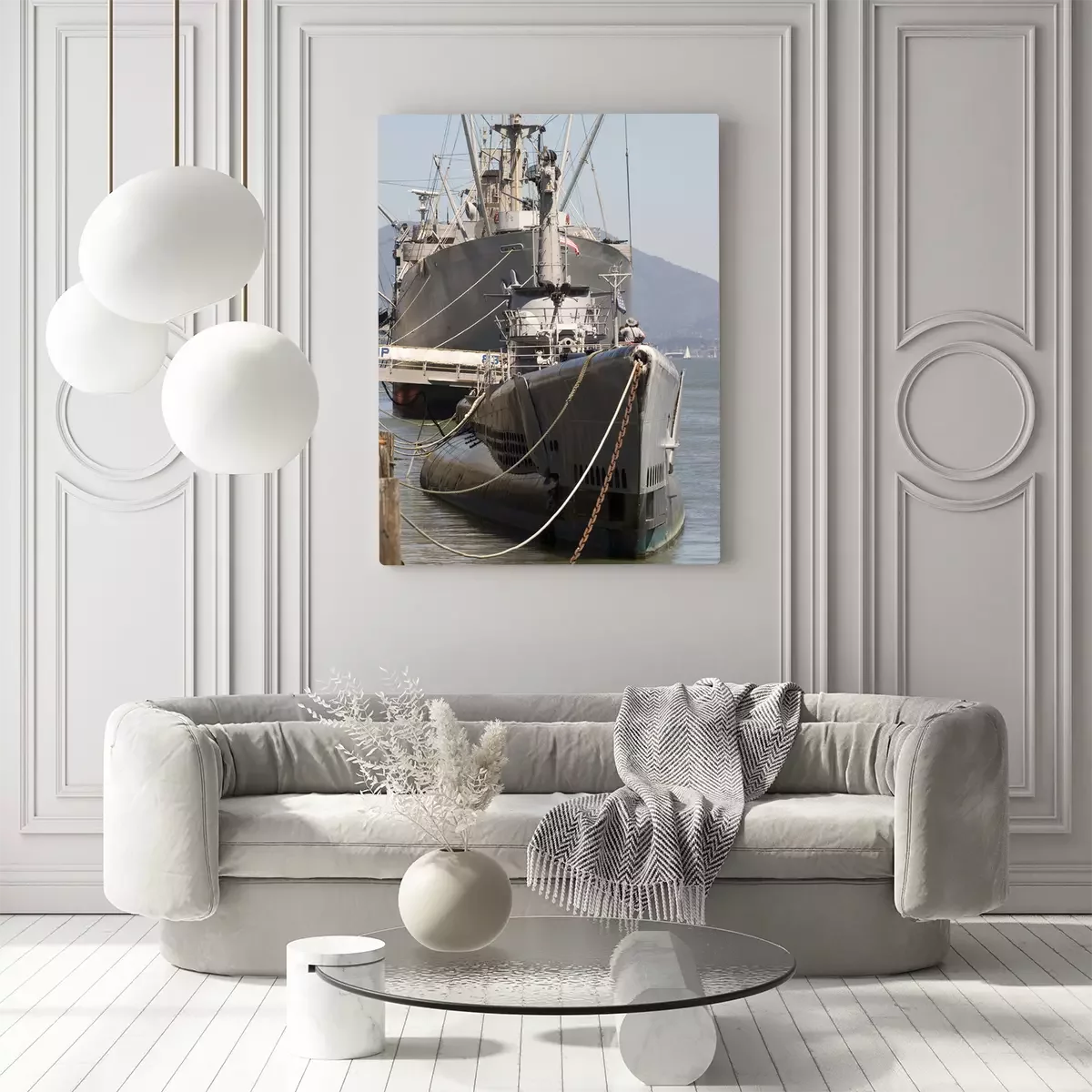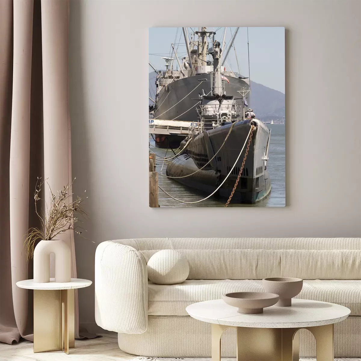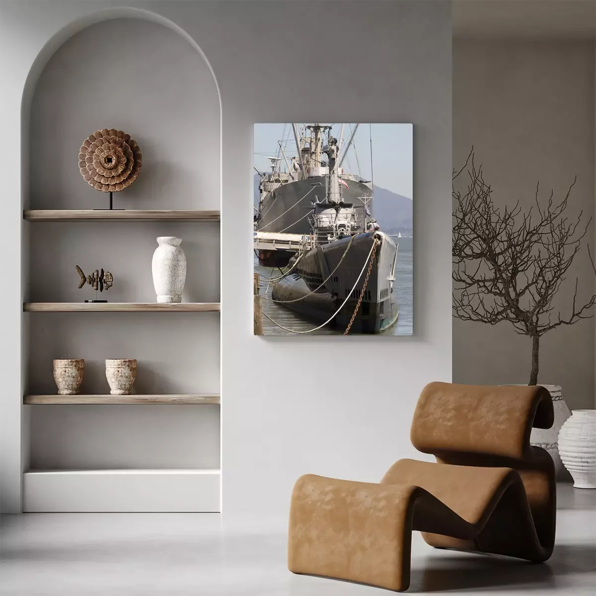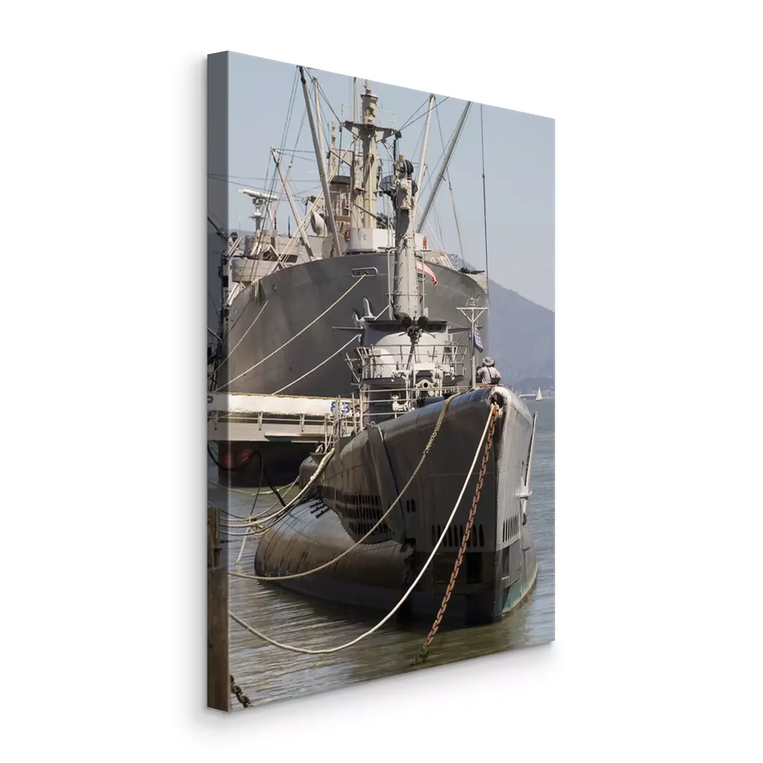 Canvas: Onderzeeër en Oorlog Schip in dok