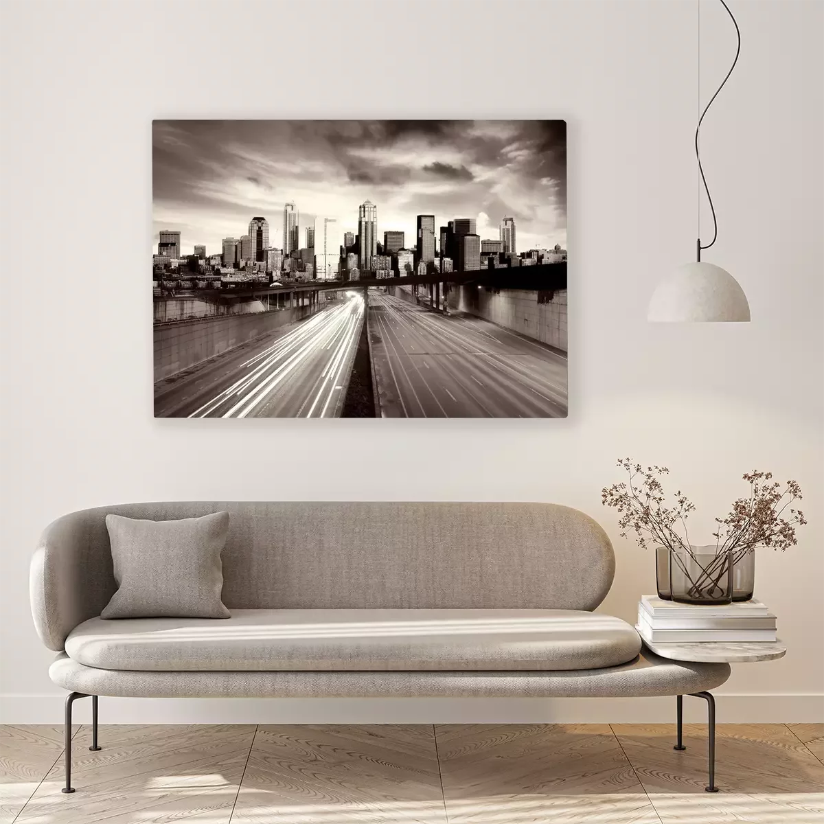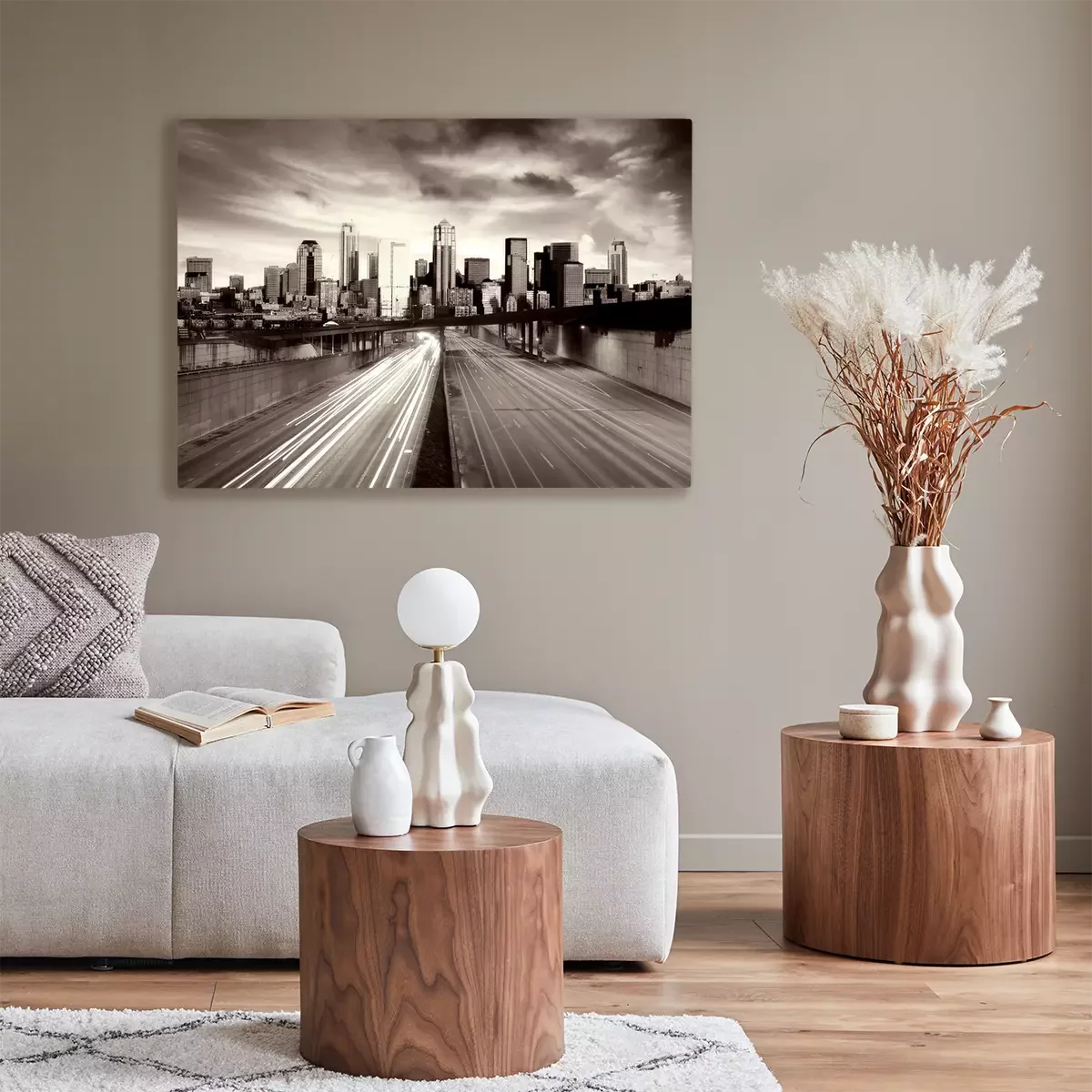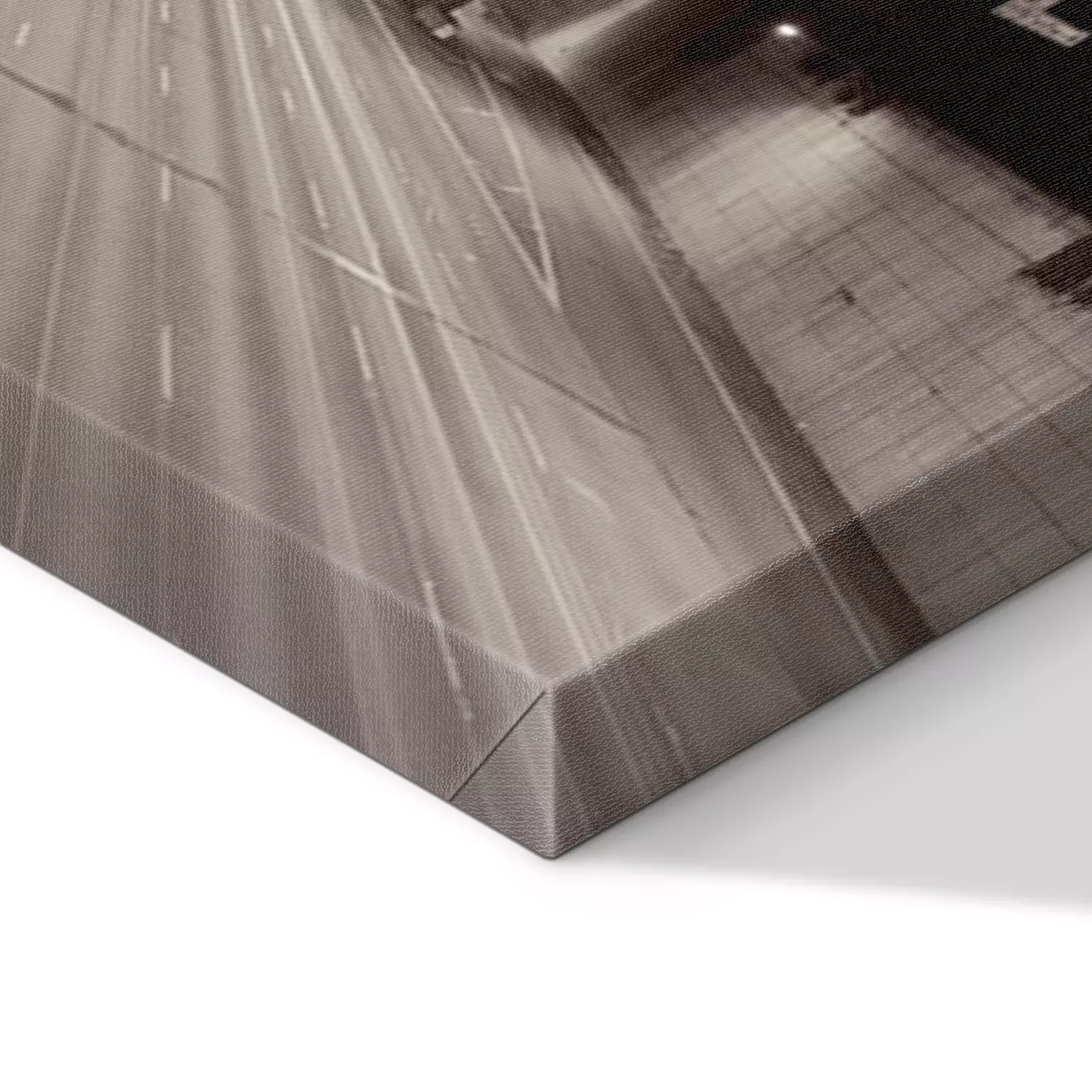 De print wordt aangebracht op hoogwaardig canvas dat op een schildersweefgetouw (spieraam) wordt gespannen. Omdat de print de zijranden bedekt, hoeft het ontwerp niet met een extra kader te worden omlijst. Wij raden ook composities aan die uit meerdere foto's bestaan en zo een coherente compositie vormen.