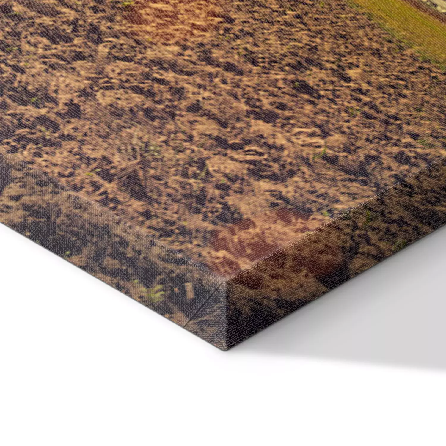 De print wordt aangebracht op hoogwaardig canvas dat op een schildersweefgetouw (spieraam) wordt gespannen. Omdat de print de zijranden bedekt, hoeft het ontwerp niet met een extra kader te worden omlijst. Wij raden ook composities aan die uit meerdere foto's bestaan en zo een coherente compositie vormen.