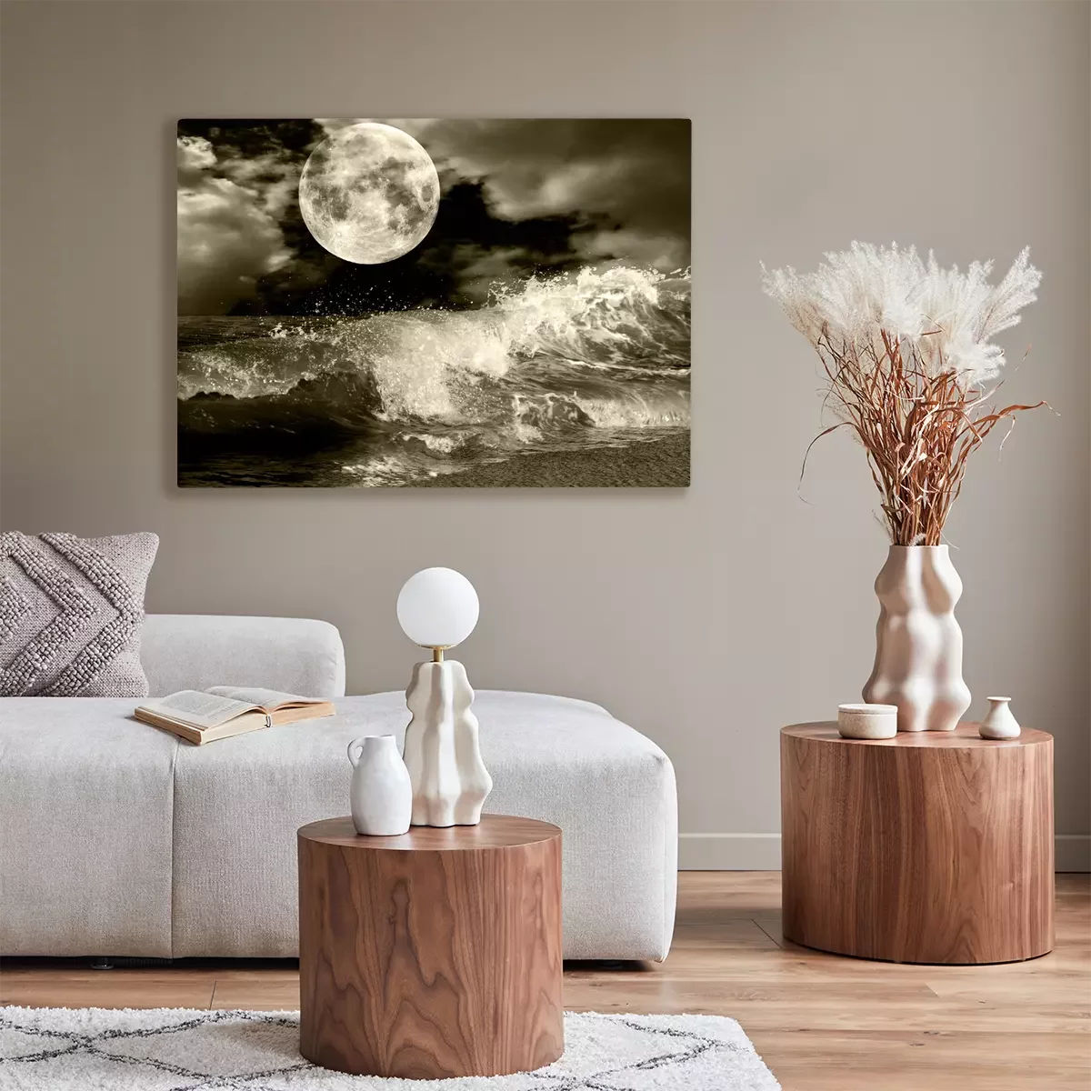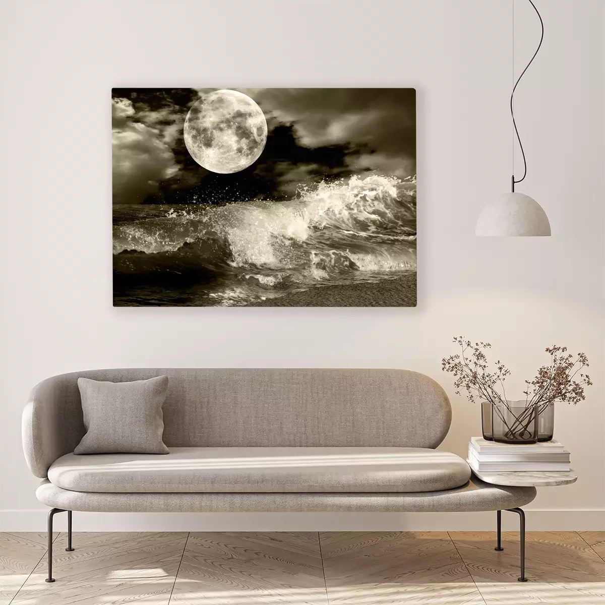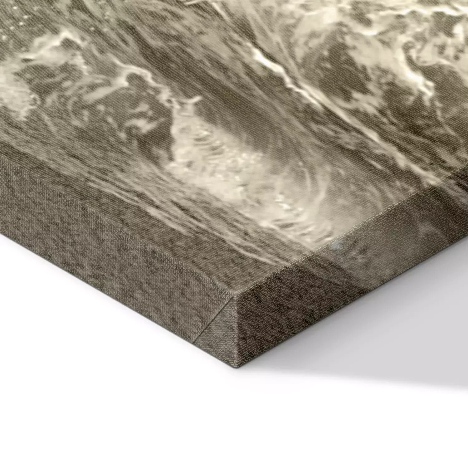 De print wordt aangebracht op hoogwaardig canvas dat op een schildersweefgetouw (spieraam) wordt gespannen. Omdat de print de zijranden bedekt, hoeft het ontwerp niet met een extra kader te worden omlijst. Wij raden ook composities aan die uit meerdere foto's bestaan en zo een coherente compositie vormen.