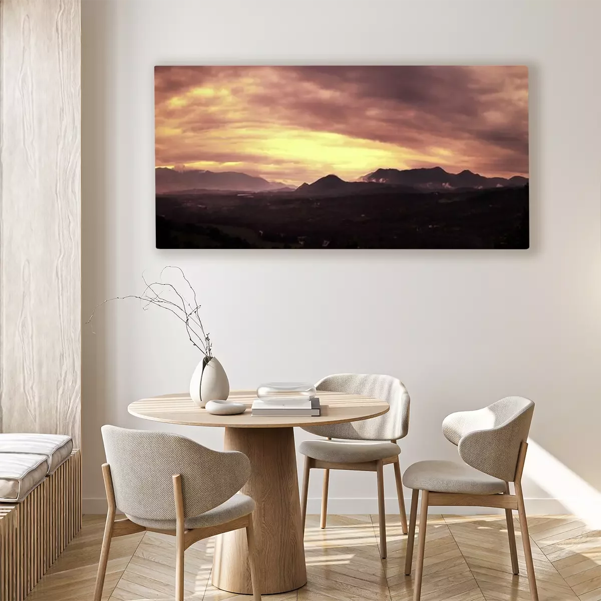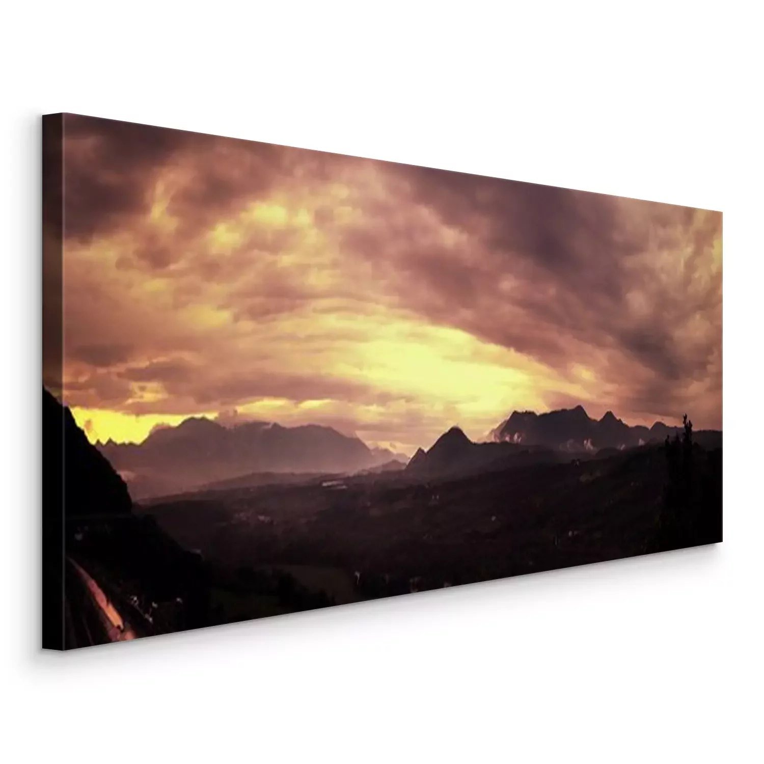 Canvas: Onweerswolken op een bergachtige achtergrond