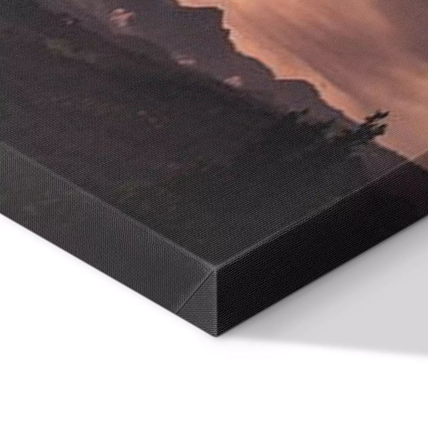 De print wordt aangebracht op hoogwaardig canvas dat op een schildersweefgetouw (spieraam) wordt gespannen. Omdat de print de zijranden bedekt, hoeft het ontwerp niet met een extra kader te worden omlijst. Wij raden ook composities aan die uit meerdere foto's bestaan en zo een coherente compositie vormen.