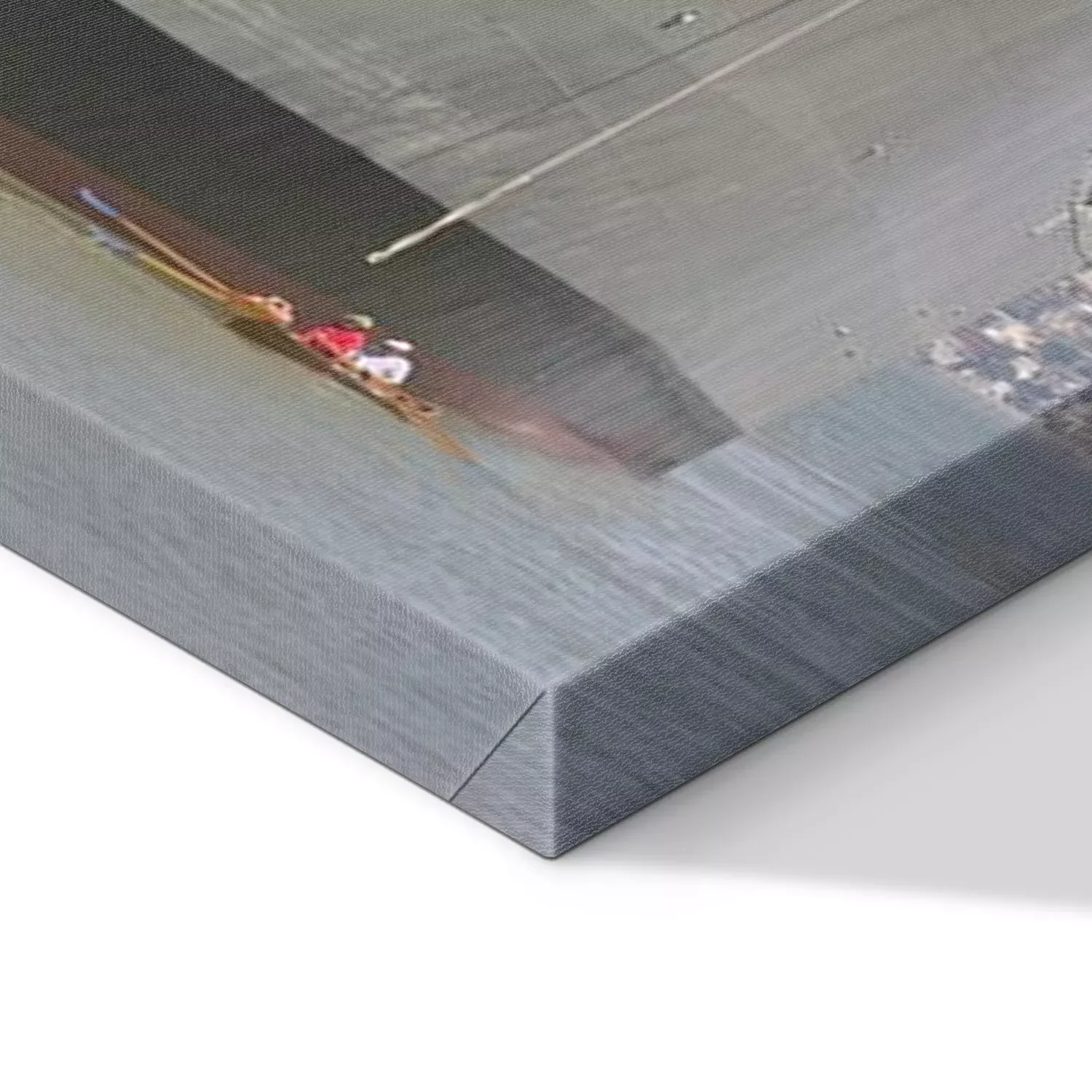 De print wordt aangebracht op hoogwaardig canvas dat op een schildersweefgetouw (spieraam) wordt gespannen. Omdat de print de zijranden bedekt, hoeft het ontwerp niet met een extra kader te worden omlijst. Wij raden ook composities aan die uit meerdere foto's bestaan en zo een coherente compositie vormen.