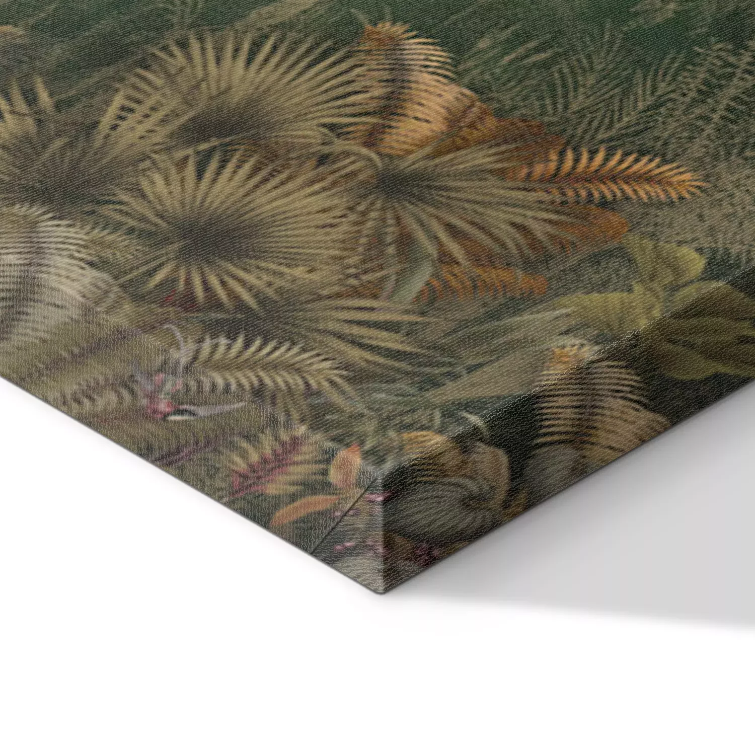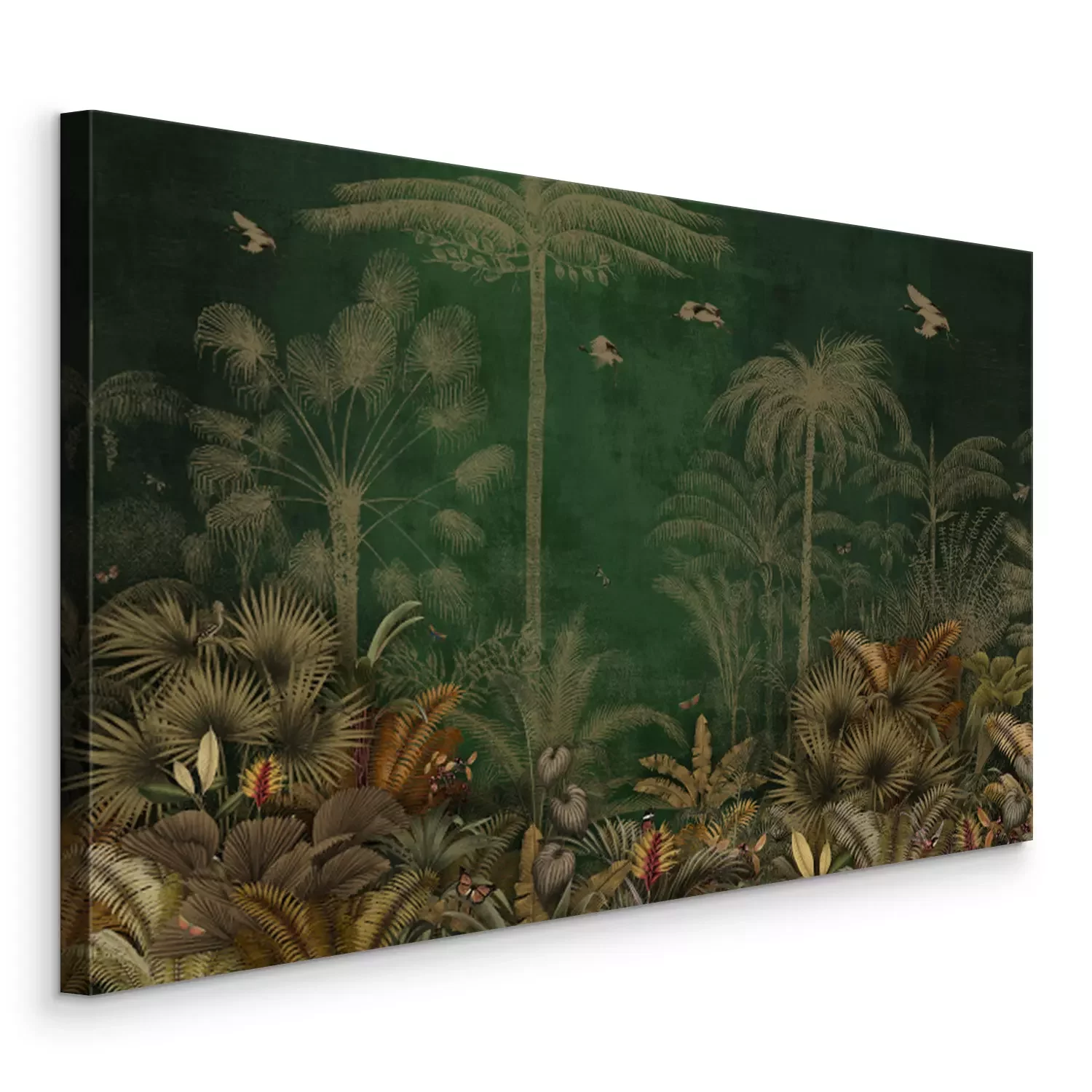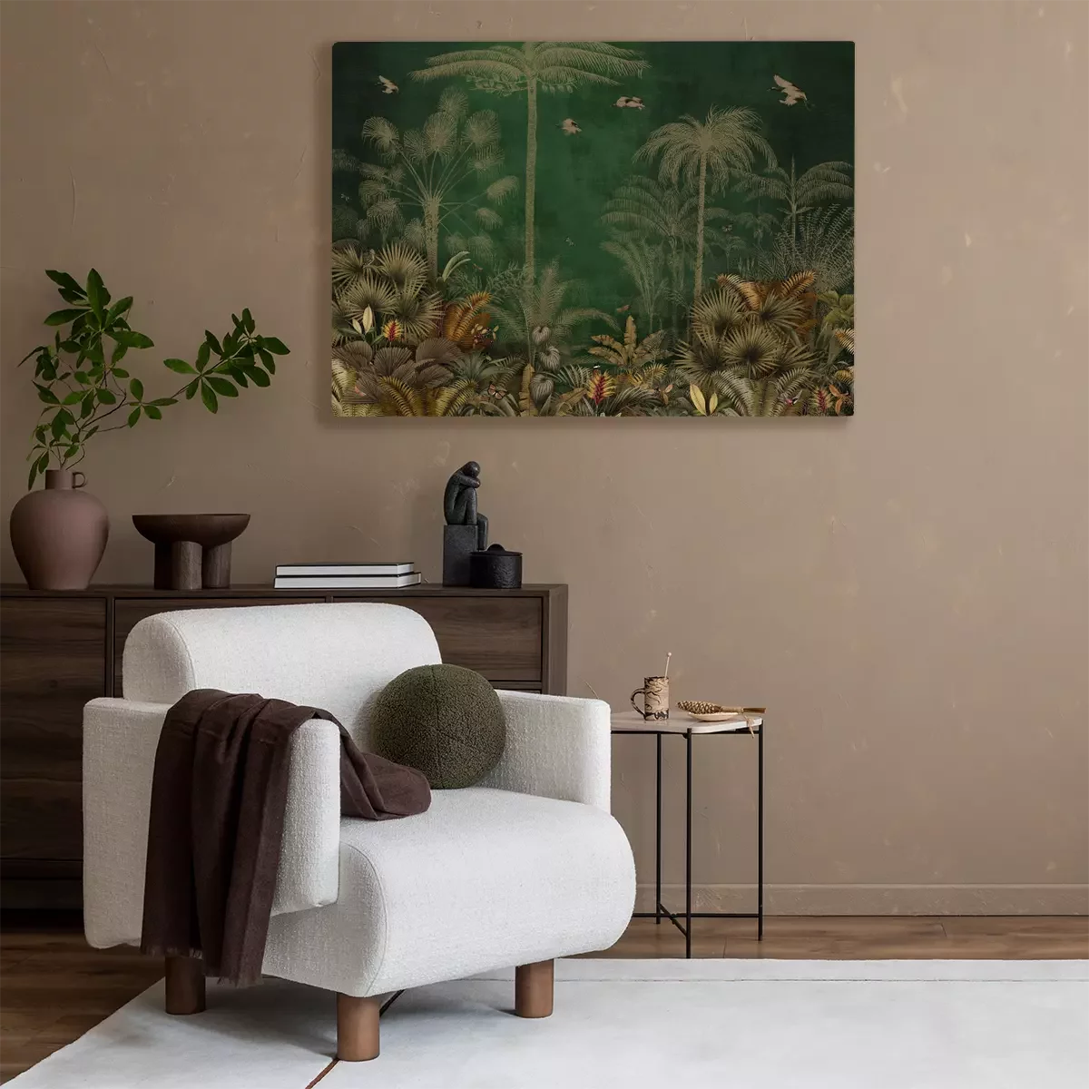 wallpaper jungle and tropical forest flamngo and tropical birds, old drawing vintage peacock