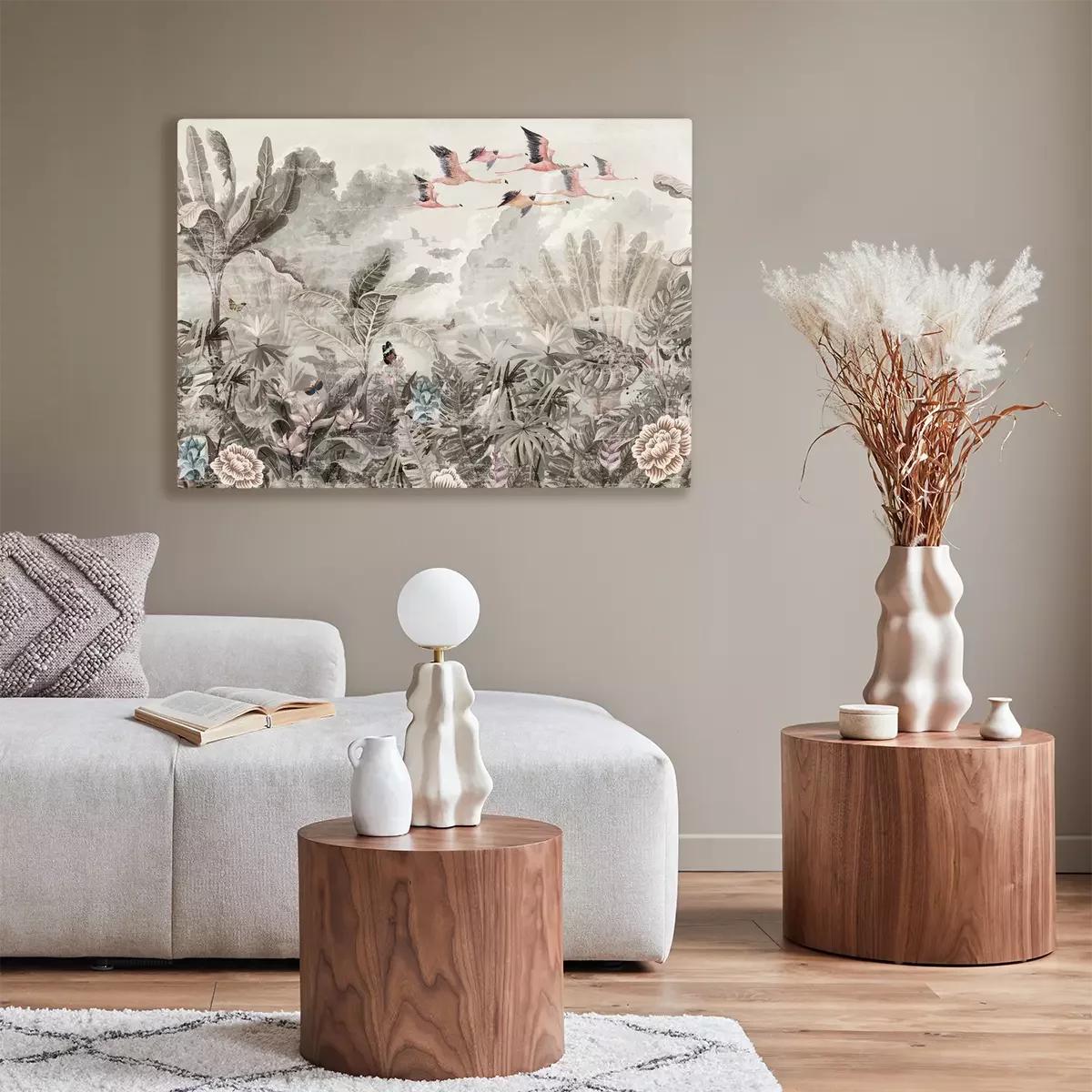 De print wordt aangebracht op hoogwaardig canvas dat op een schildersweefgetouw (spieraam) wordt gespannen. Omdat de print de zijranden bedekt, hoeft het ontwerp niet met een extra kader te worden omlijst. Wij raden ook composities aan die uit meerdere foto's bestaan en zo een coherente compositie vormen.
