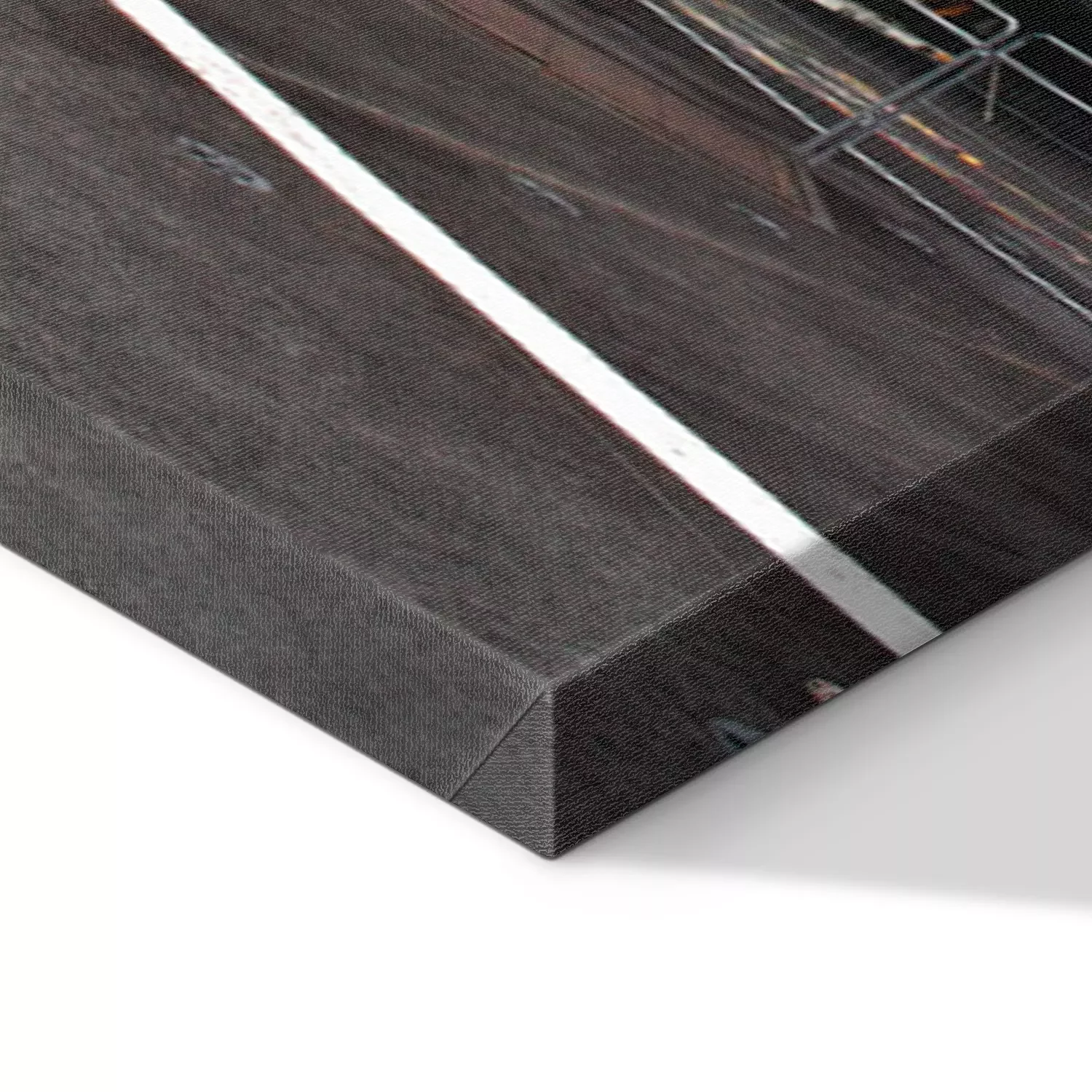 De print wordt aangebracht op hoogwaardig canvas dat op een schildersweefgetouw (spieraam) wordt gespannen. Omdat de print de zijranden bedekt, hoeft het ontwerp niet met een extra kader te worden omlijst. Wij raden ook composities aan die uit meerdere foto's bestaan en zo een coherente compositie vormen.