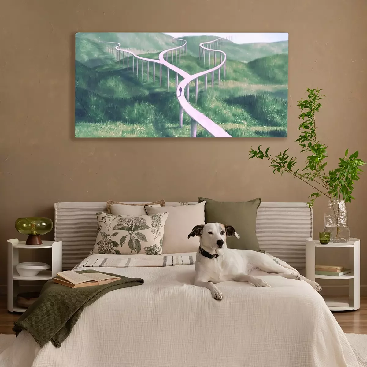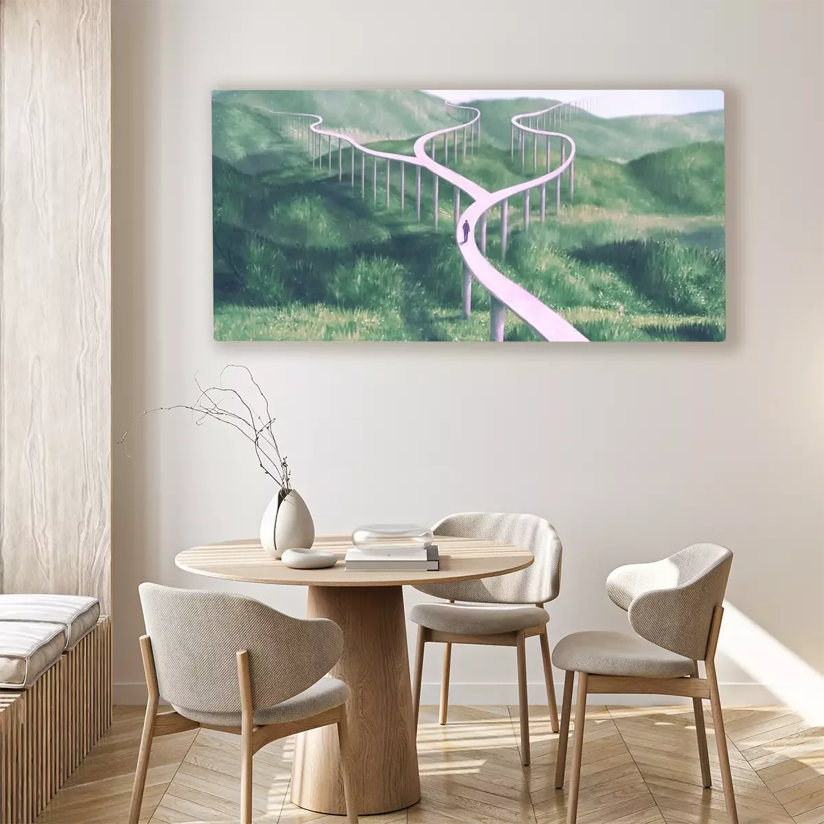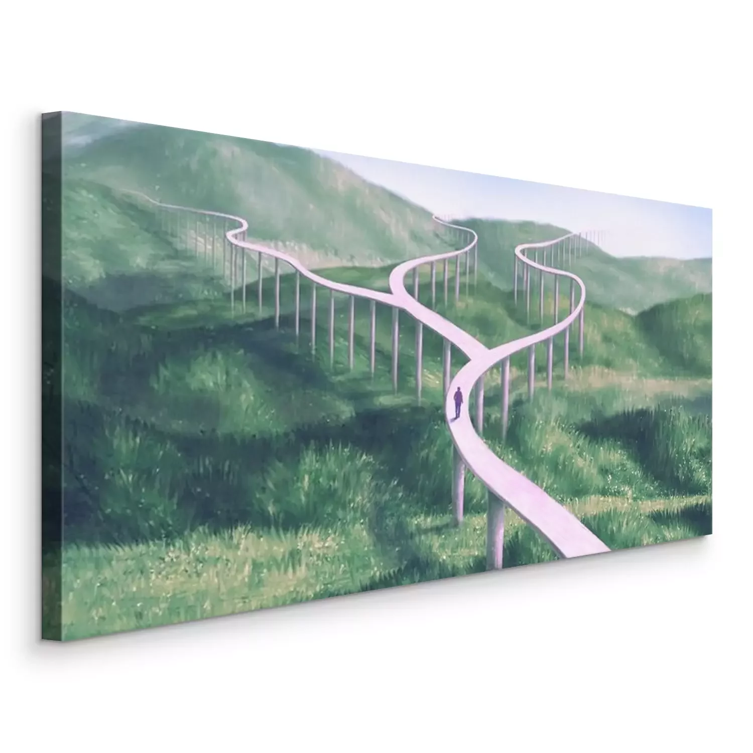 De print wordt aangebracht op hoogwaardig canvas dat op een schildersweefgetouw (spieraam) wordt gespannen. Omdat de print de zijranden bedekt, hoeft het ontwerp niet met een extra kader te worden omlijst. Wij raden ook composities aan die uit meerdere foto's bestaan en zo een coherente compositie vormen.