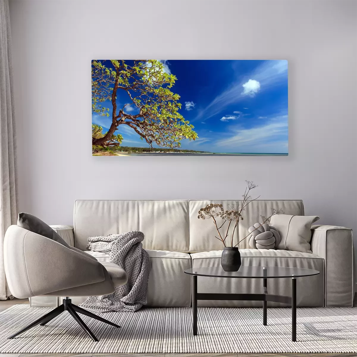 De print wordt aangebracht op hoogwaardig canvas dat op een schildersweefgetouw (spieraam) wordt gespannen. Omdat de print de zijranden bedekt, hoeft het ontwerp niet met een extra kader te worden omlijst. Wij raden ook composities aan die uit meerdere foto's bestaan en zo een coherente compositie vormen.