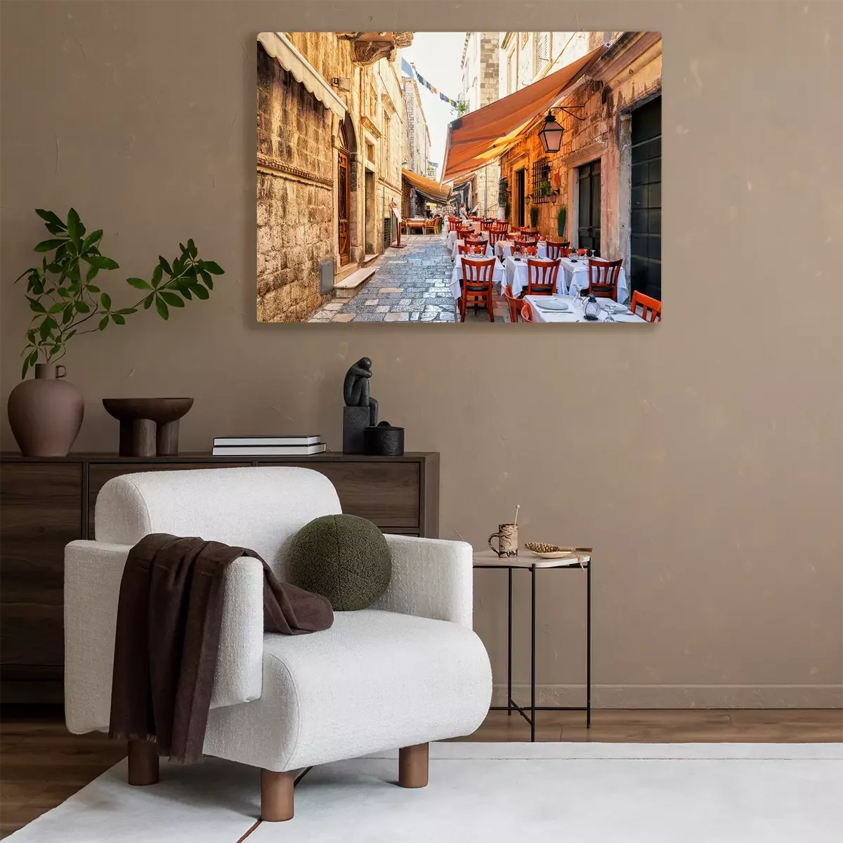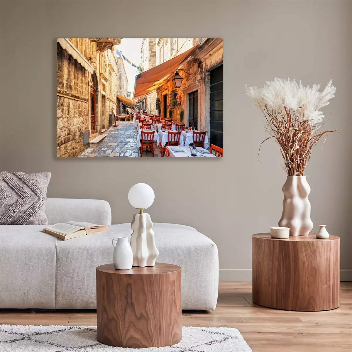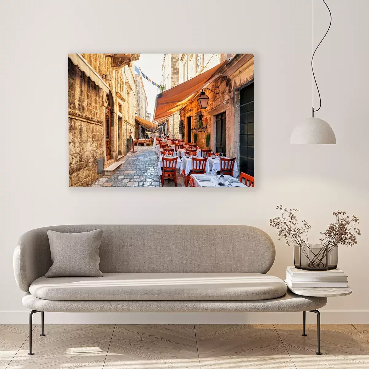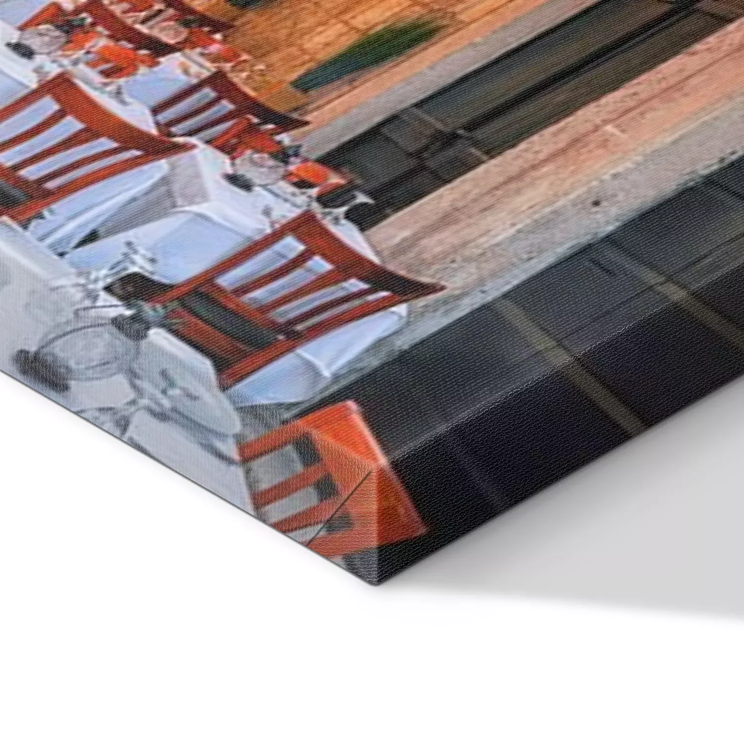 De print wordt aangebracht op hoogwaardig canvas dat op een schildersweefgetouw (spieraam) wordt gespannen. Omdat de print de zijranden bedekt, hoeft het ontwerp niet met een extra kader te worden omlijst. Wij raden ook composities aan die uit meerdere foto's bestaan en zo een coherente compositie vormen.