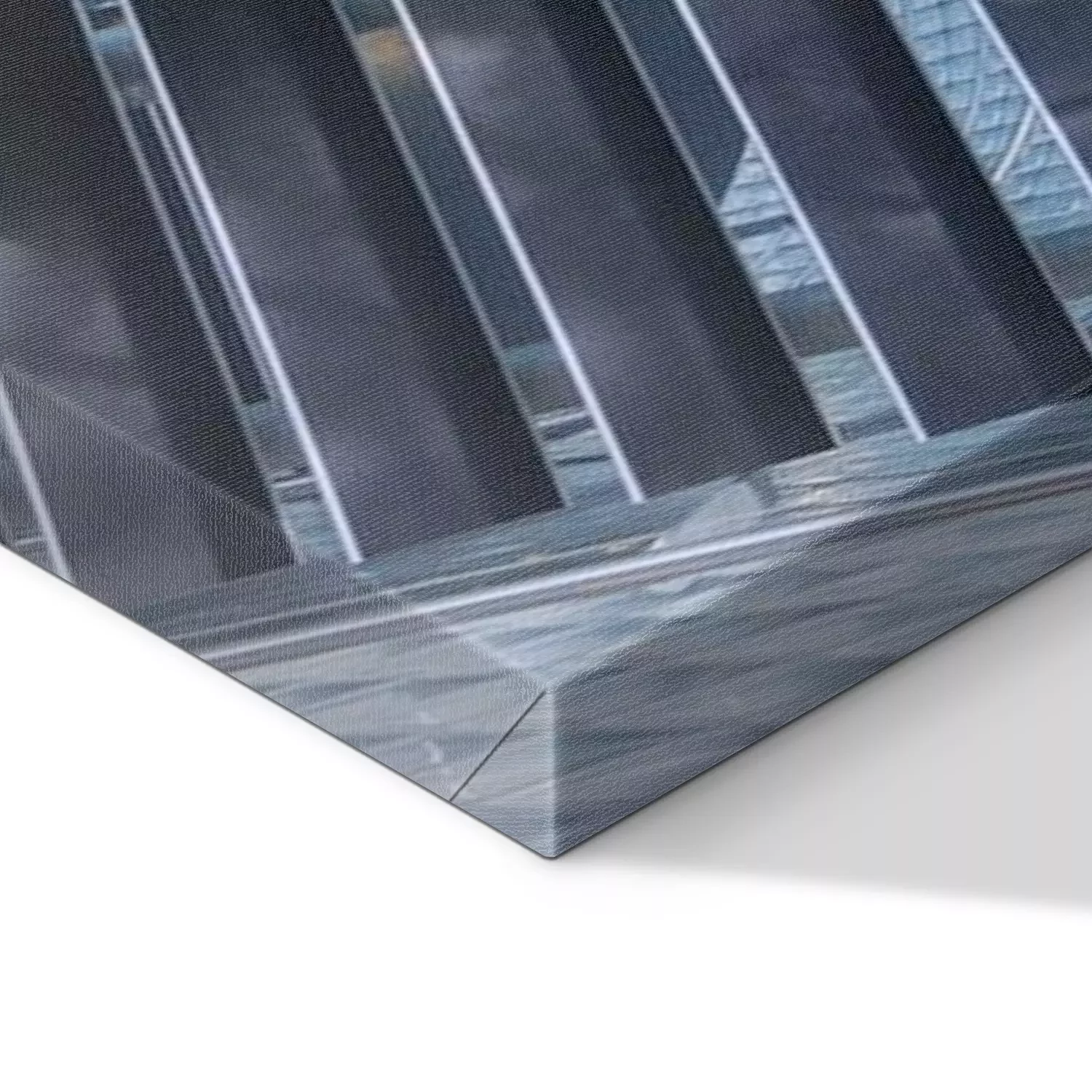 De print wordt aangebracht op hoogwaardig canvas dat op een schildersweefgetouw (spieraam) wordt gespannen. Omdat de print de zijranden bedekt, hoeft het ontwerp niet met een extra kader te worden omlijst. Wij raden ook composities aan die uit meerdere foto's bestaan en zo een coherente compositie vormen.