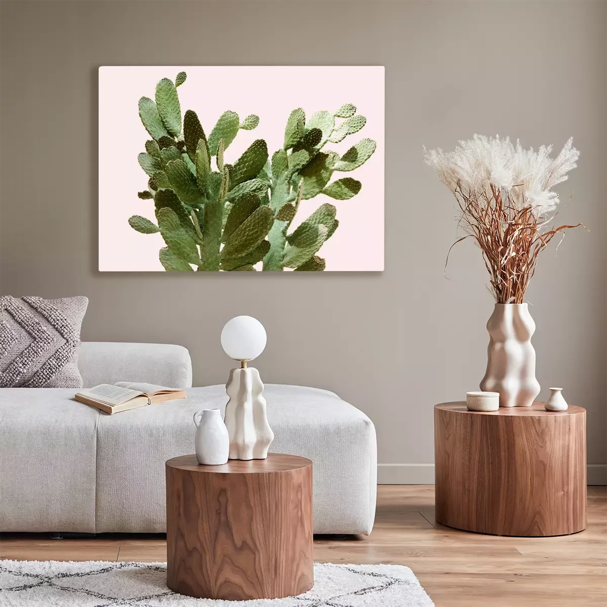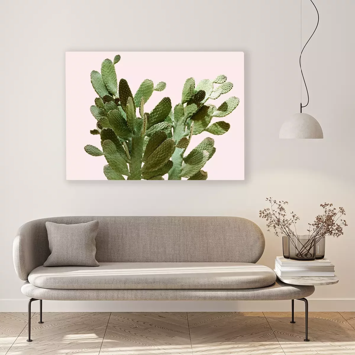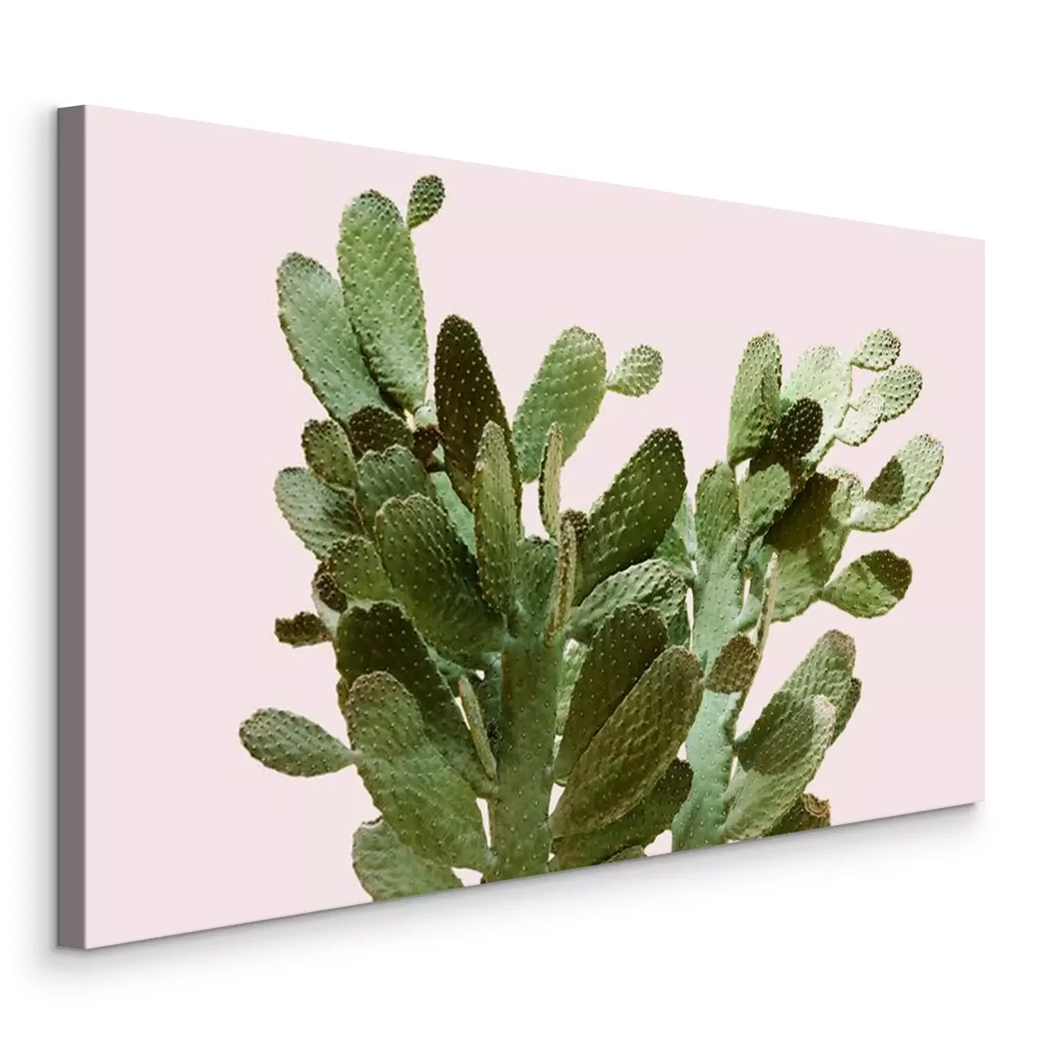 Canvas: Opuntia cactus op lichtroze achtergrond