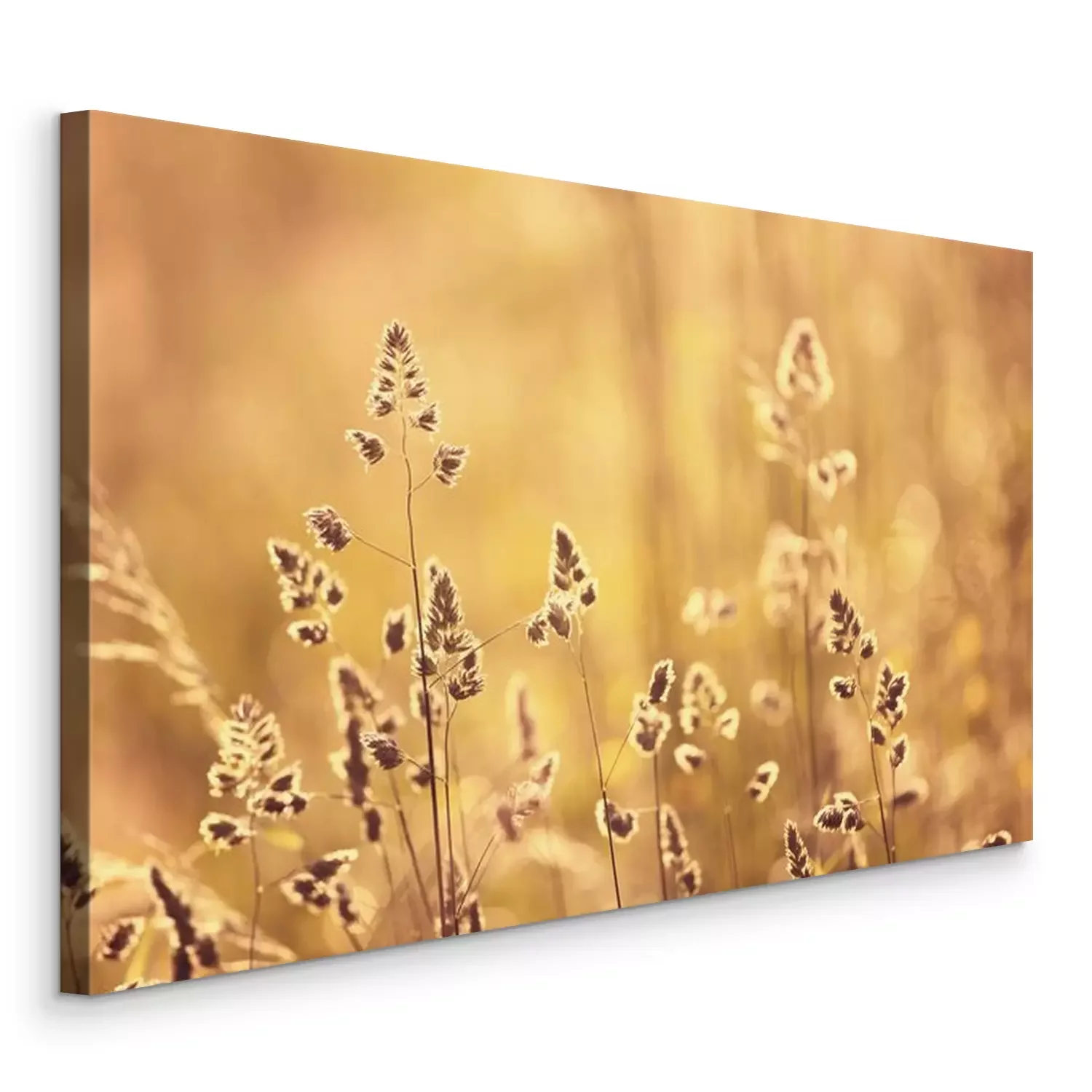 Canvas Oranjerode kleur wazig weide detail achtergrond bij zonsondergang licht. Selectieve aandacht gebruikt.
