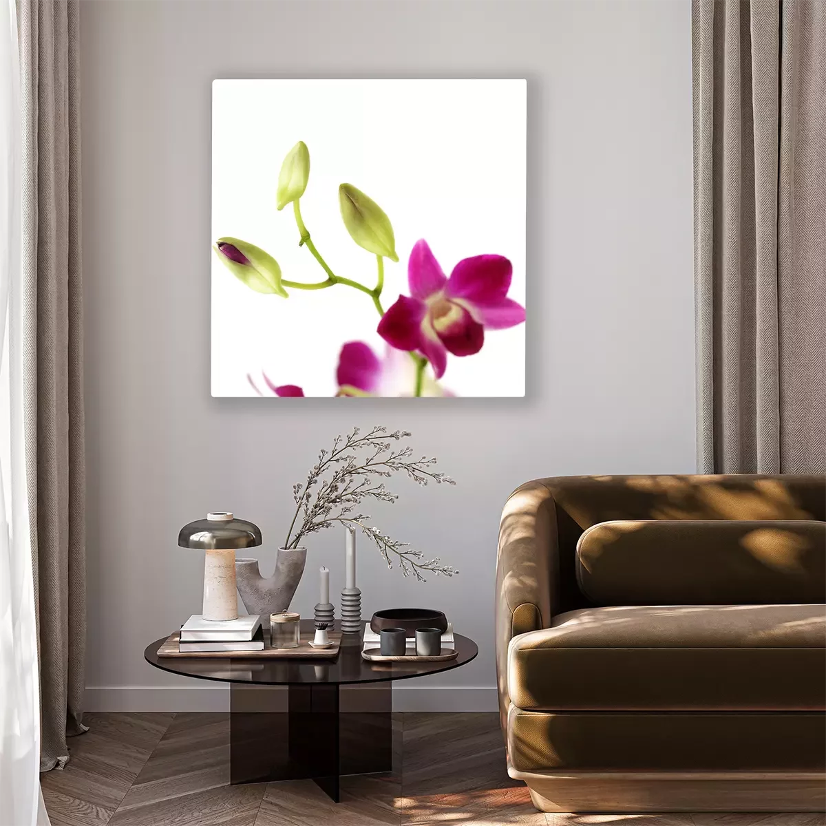 De print wordt aangebracht op hoogwaardig canvas dat op een schildersweefgetouw (spieraam) wordt gespannen. Omdat de print de zijranden bedekt, hoeft het ontwerp niet met een extra kader te worden omlijst. Wij raden ook composities aan die uit meerdere foto's bestaan en zo een coherente compositie vormen.