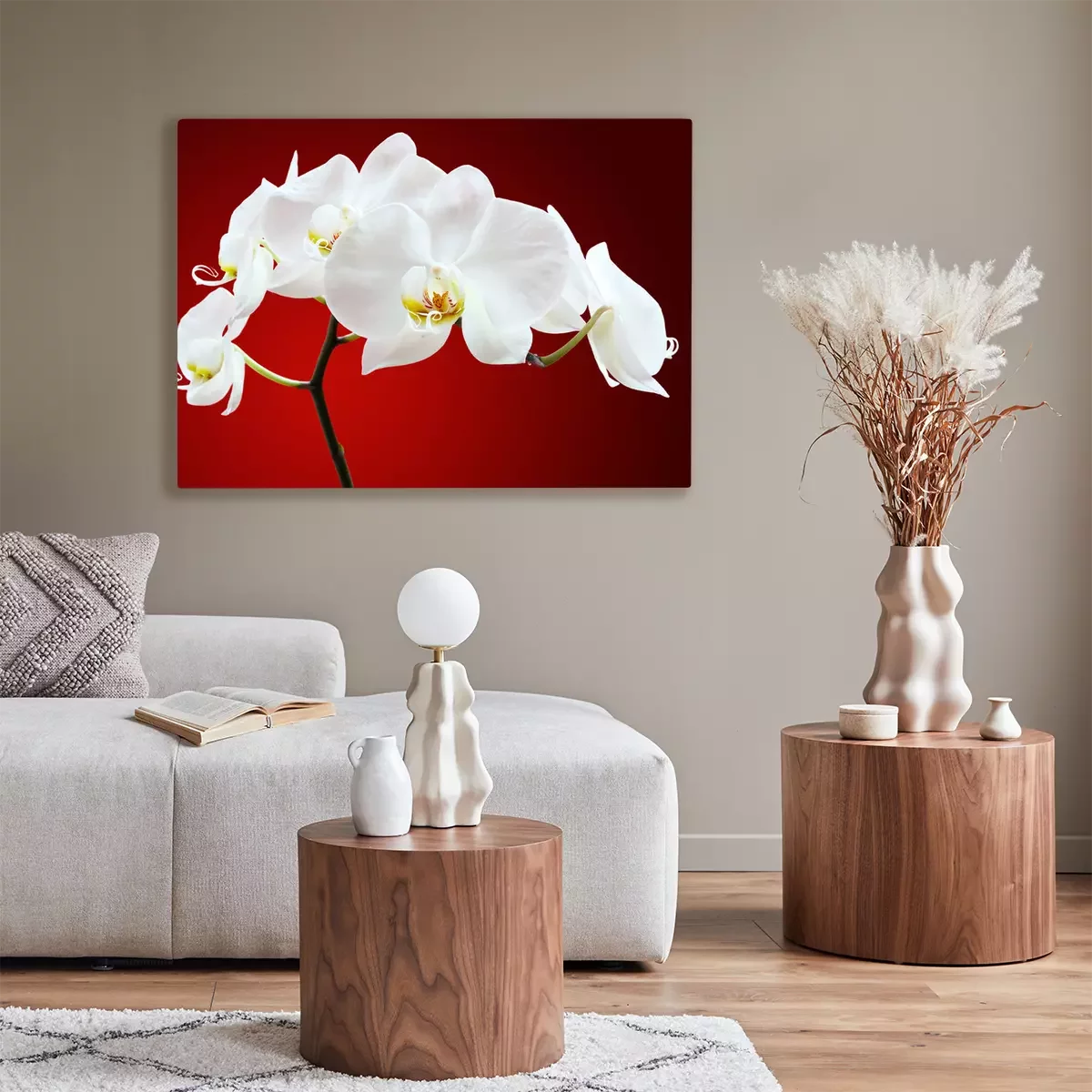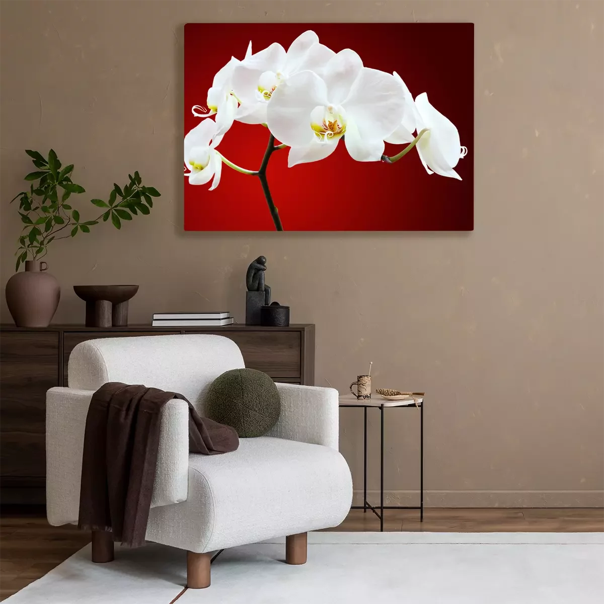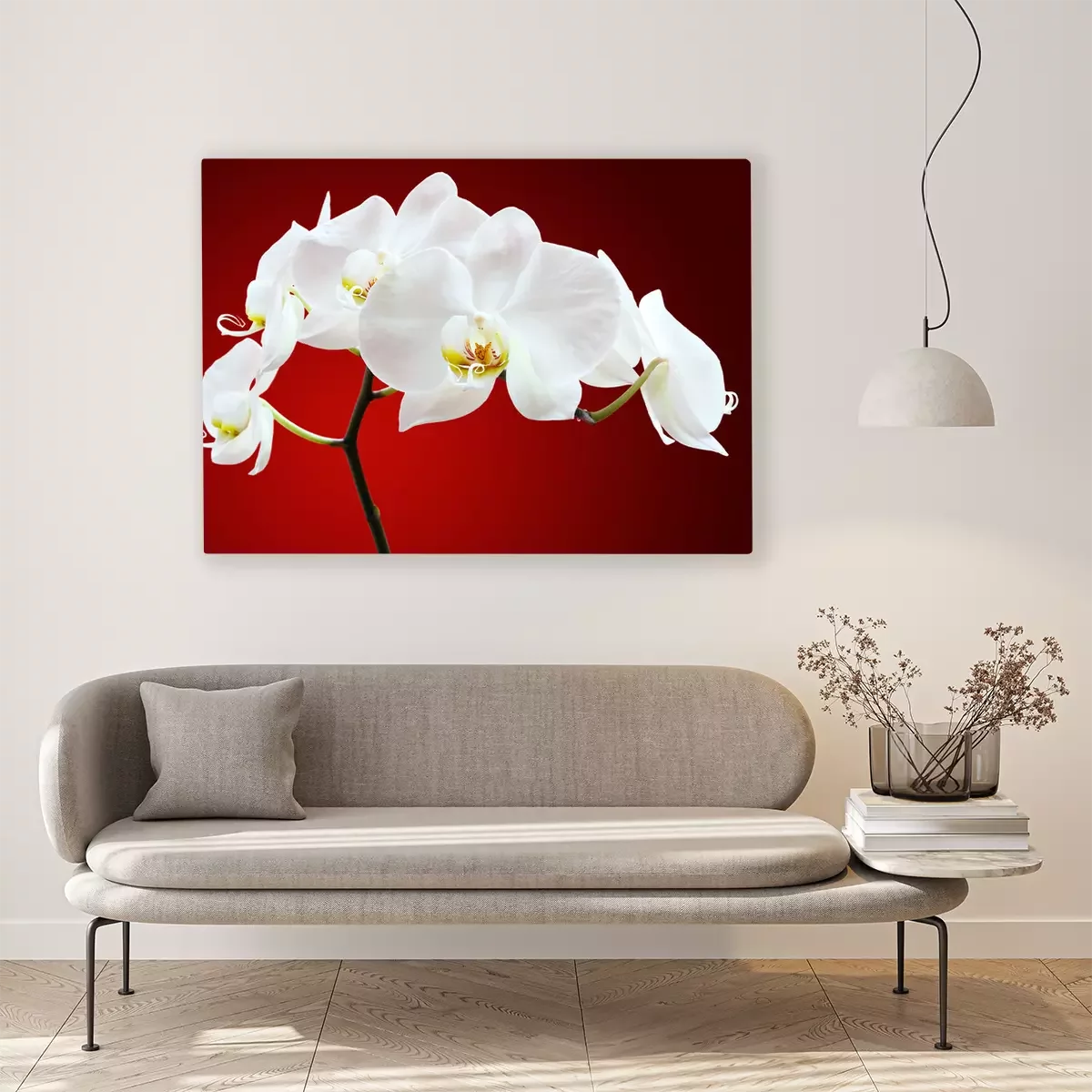 Canvas Orchidee tegen rood