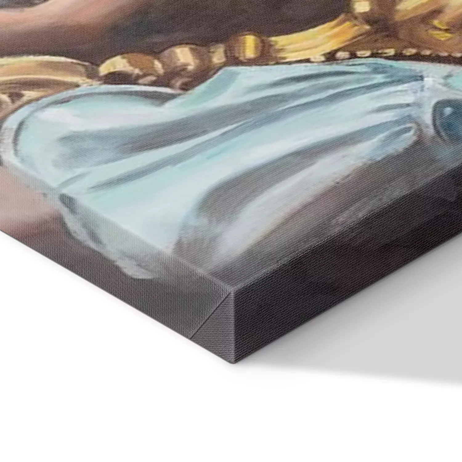 De print wordt aangebracht op hoogwaardig canvas dat op een schildersweefgetouw (spieraam) wordt gespannen. Omdat de print de zijranden bedekt, hoeft het ontwerp niet met een extra kader te worden omlijst. Wij raden ook composities aan die uit meerdere foto's bestaan en zo een coherente compositie vormen.