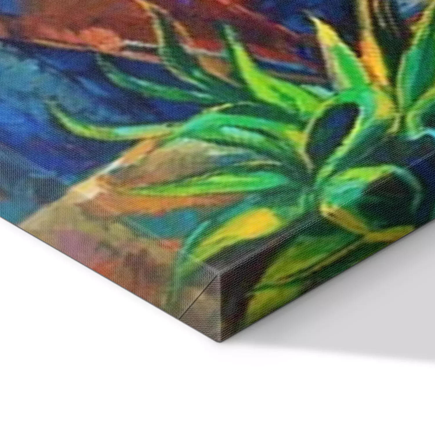 De print wordt aangebracht op hoogwaardig canvas dat op een schildersweefgetouw (spieraam) wordt gespannen. Omdat de print de zijranden bedekt, hoeft het ontwerp niet met een extra kader te worden omlijst. Wij raden ook composities aan die uit meerdere foto's bestaan en zo een coherente compositie vormen.