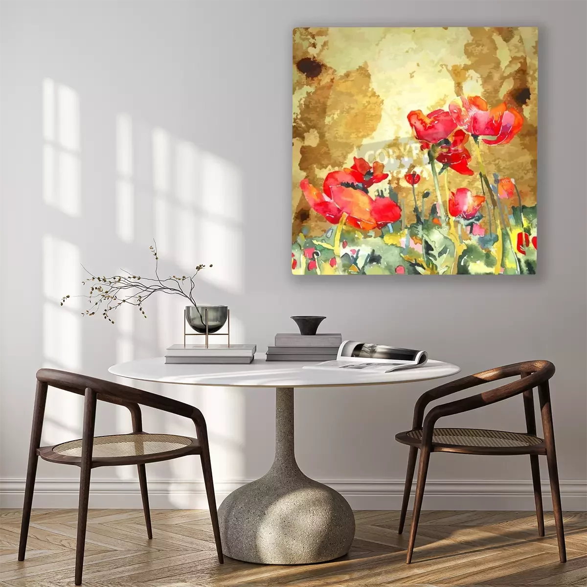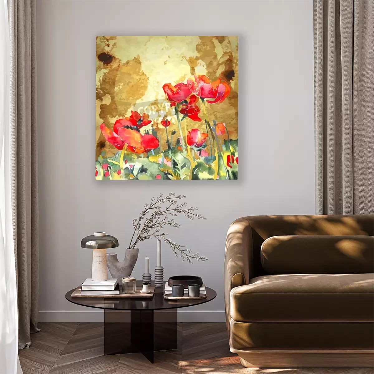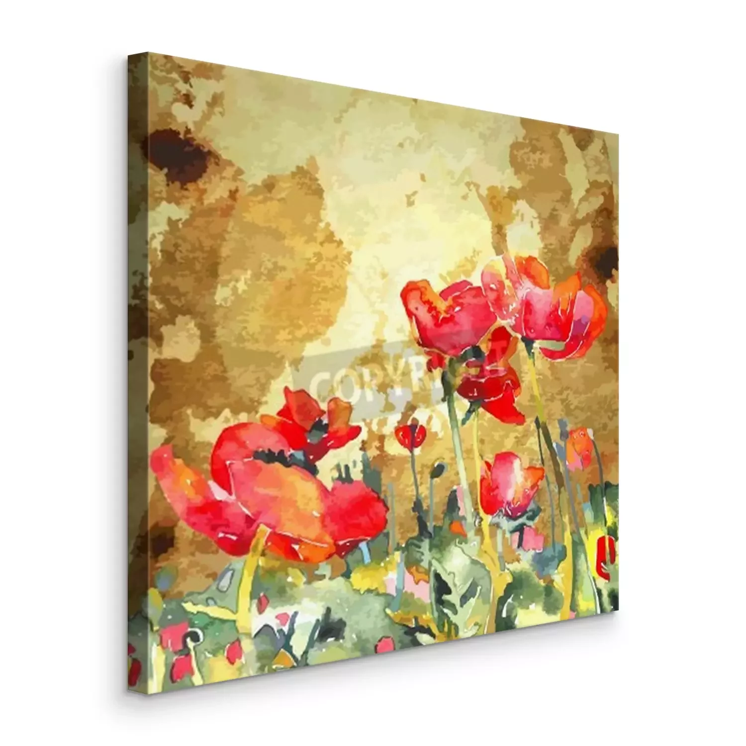 Canvas: Originele aquarel papaver bloem op gouden achtergrond