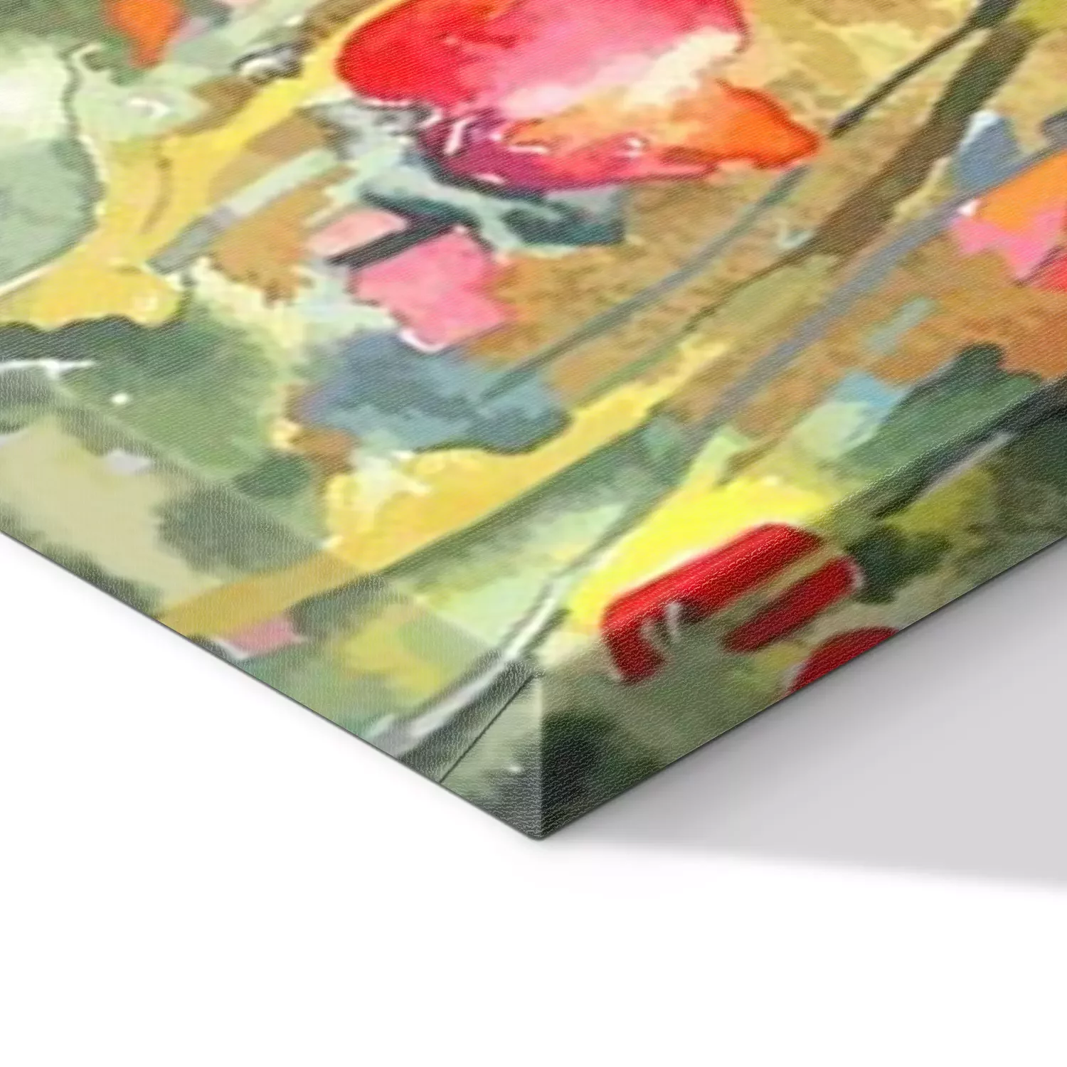 De print wordt aangebracht op hoogwaardig canvas dat op een schildersweefgetouw (spieraam) wordt gespannen. Omdat de print de zijranden bedekt, hoeft het ontwerp niet met een extra kader te worden omlijst. Wij raden ook composities aan die uit meerdere foto's bestaan en zo een coherente compositie vormen.