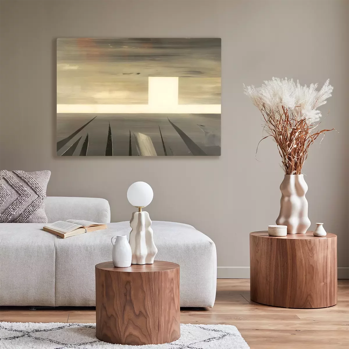 De print wordt aangebracht op hoogwaardig canvas dat op een schildersweefgetouw (spieraam) wordt gespannen. Omdat de print de zijranden bedekt, hoeft het ontwerp niet met een extra kader te worden omlijst. Wij raden ook composities aan die uit meerdere foto's bestaan en zo een coherente compositie vormen.