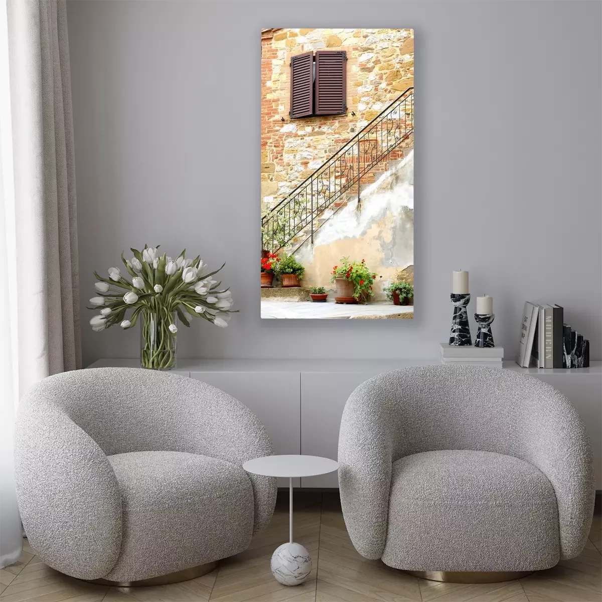 De print wordt aangebracht op hoogwaardig canvas dat op een schildersweefgetouw (spieraam) wordt gespannen. Omdat de print de zijranden bedekt, hoeft het ontwerp niet met een extra kader te worden omlijst. Wij raden ook composities aan die uit meerdere foto's bestaan en zo een coherente compositie vormen.