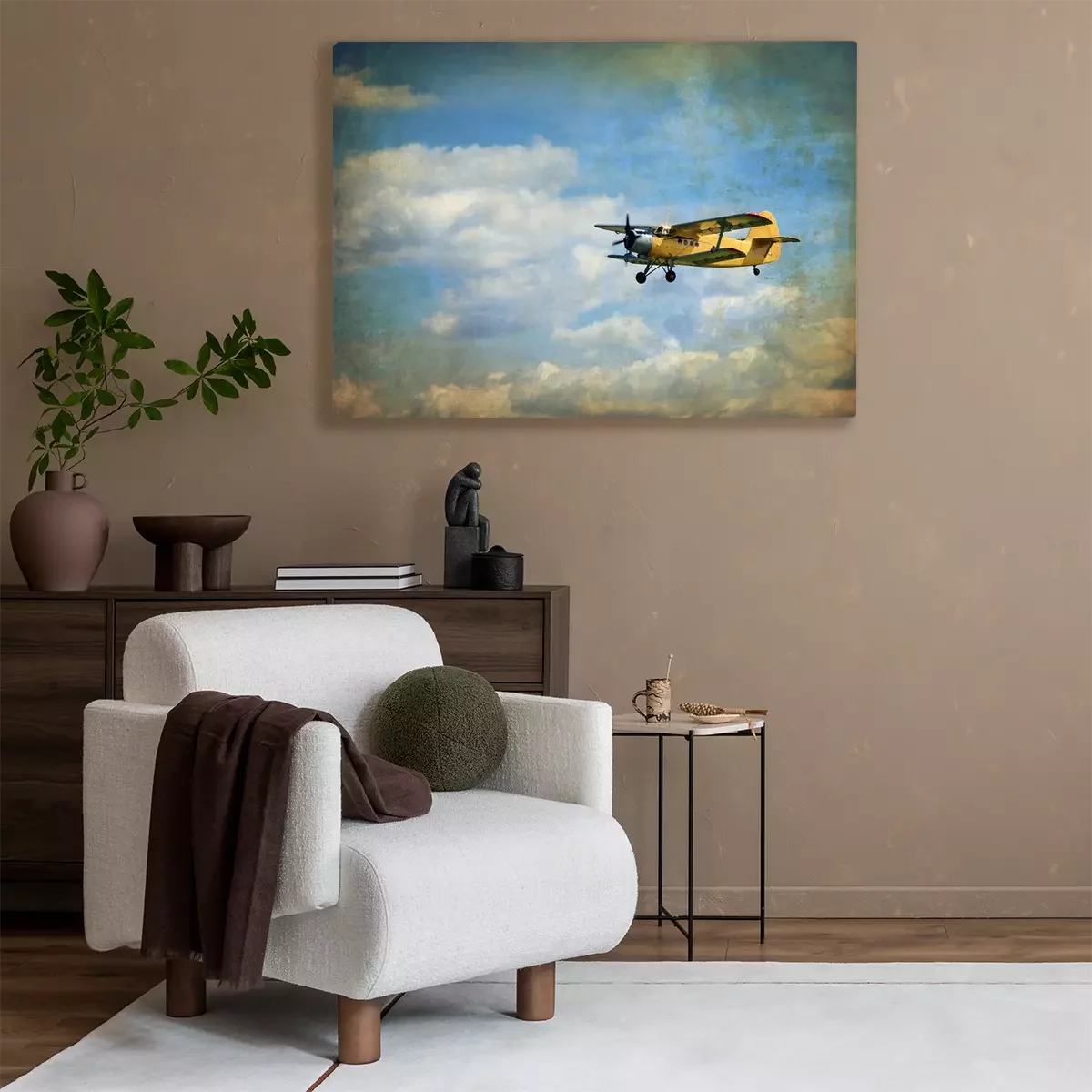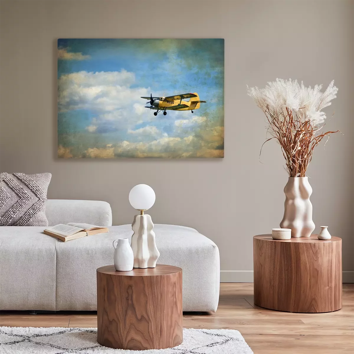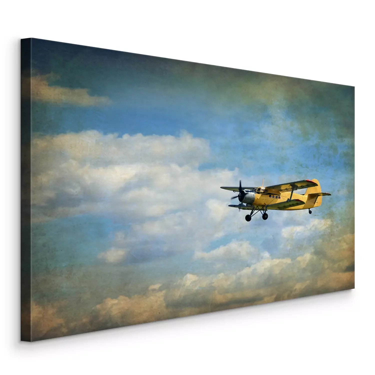 Canvas Oud vliegende tweedekker, retro luchtvaart achtergrond