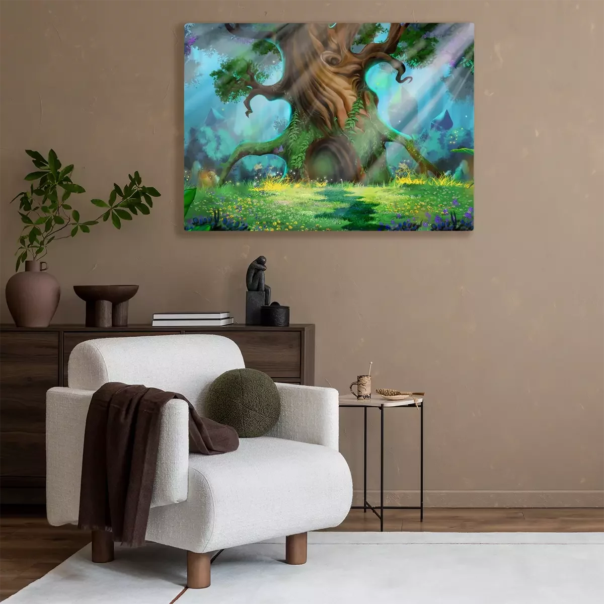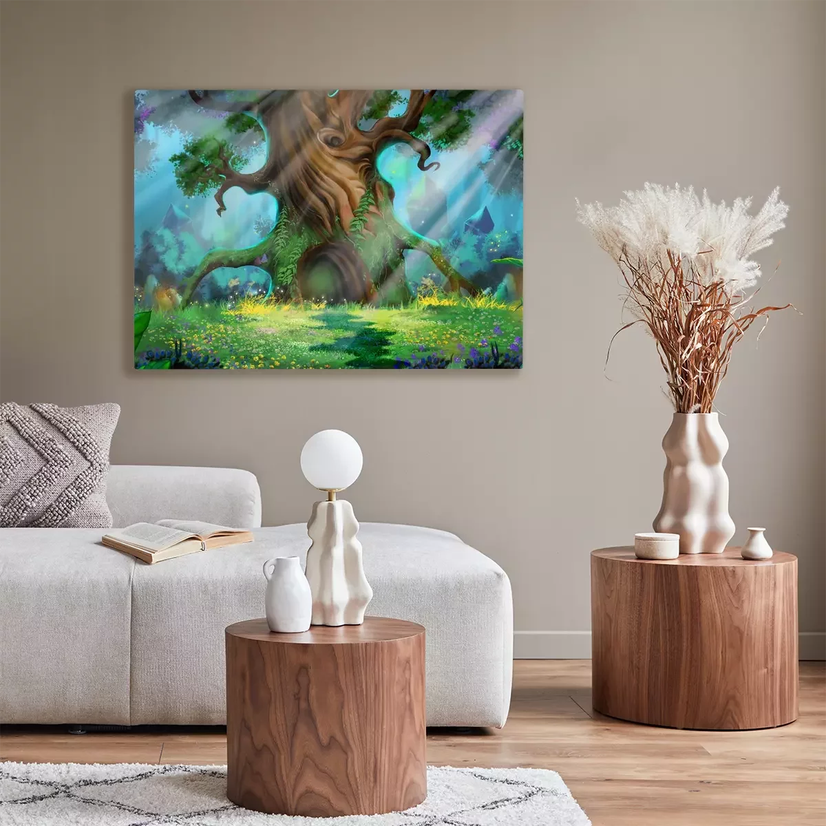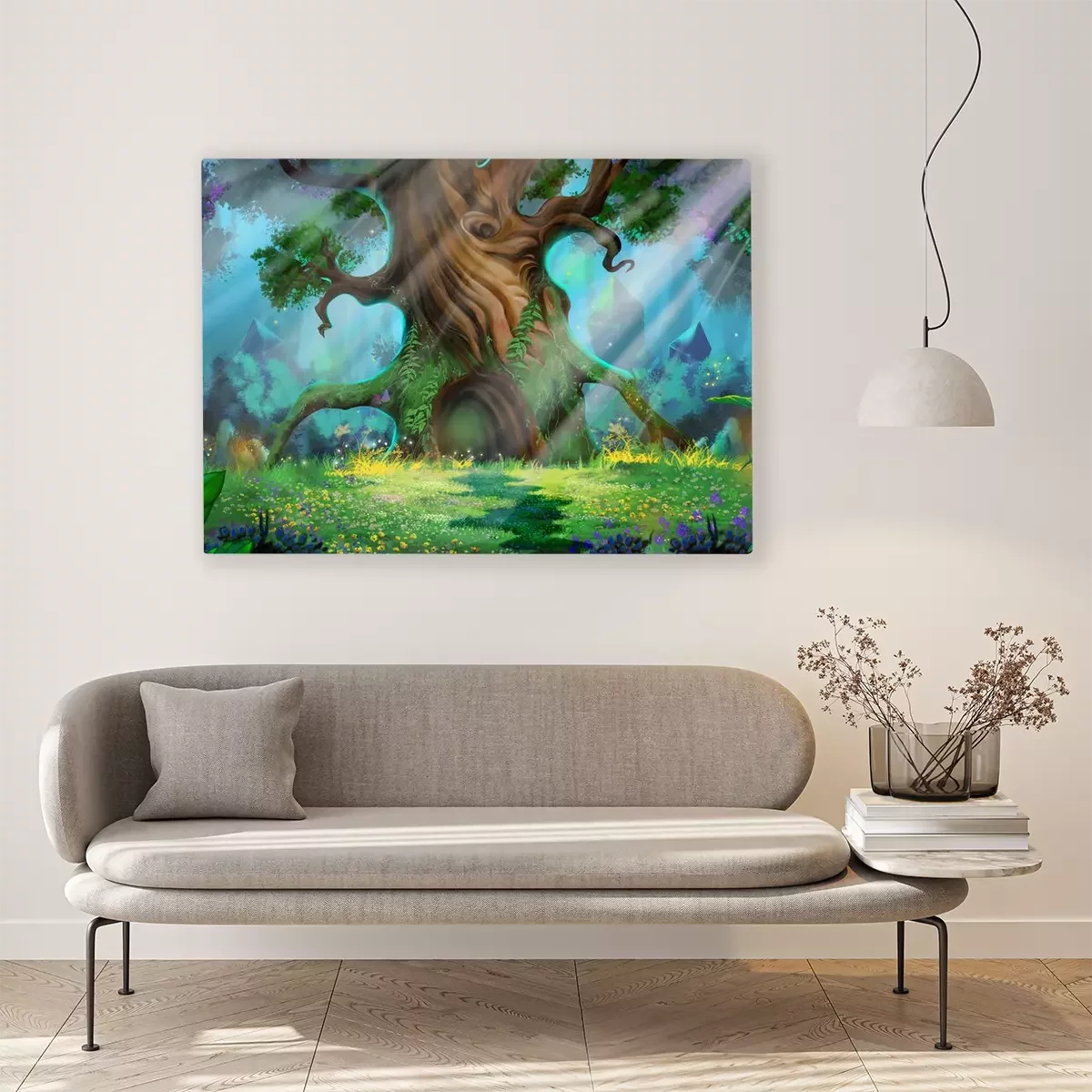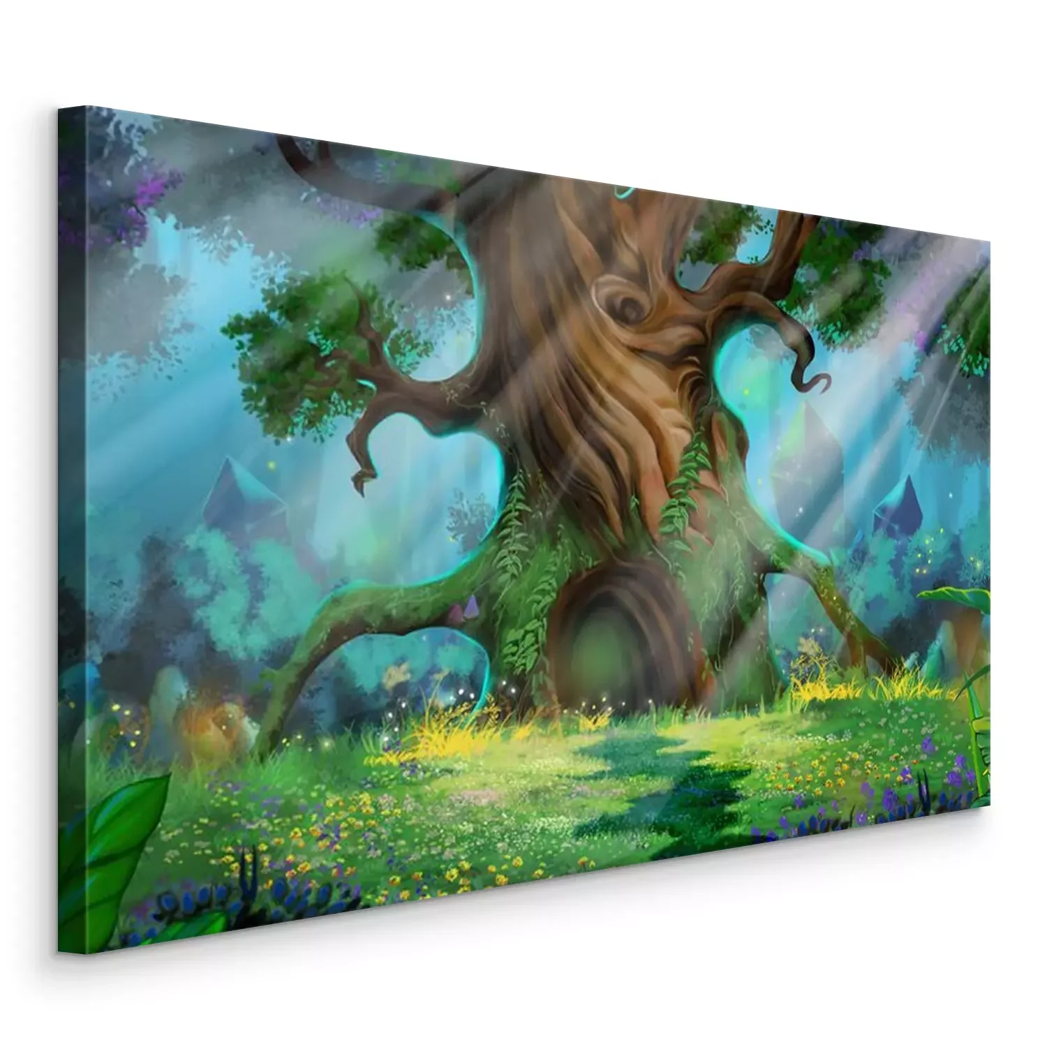 Illustratie: De Magische Boom in The Magnificent en Mysterieus en Scary Forest. Realistische stijl Cartoon Scene / Wallpaper / Achtergrond Design.