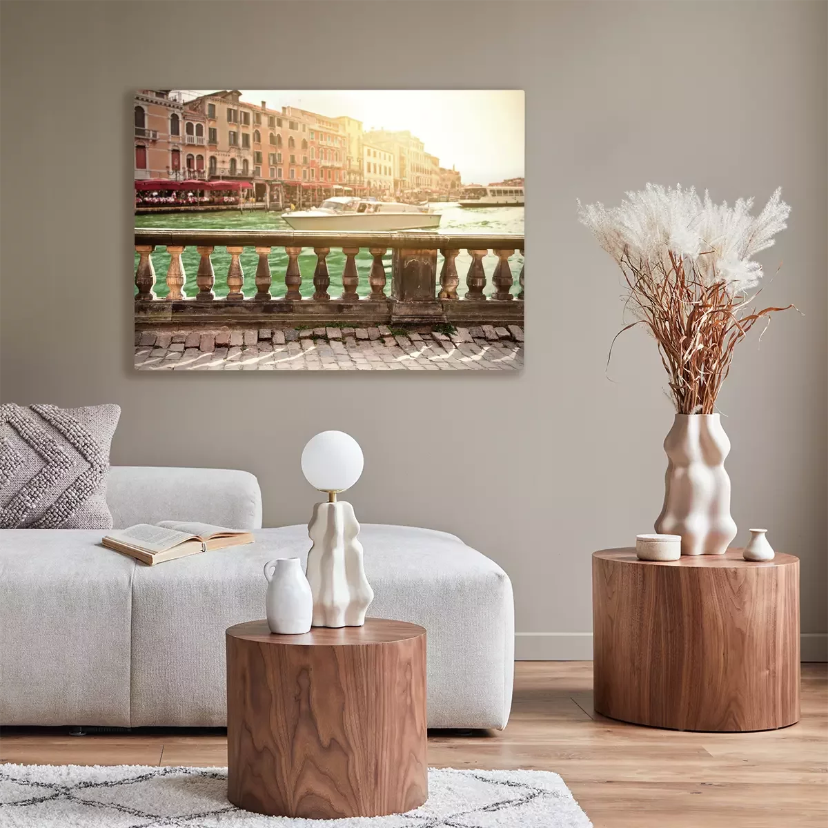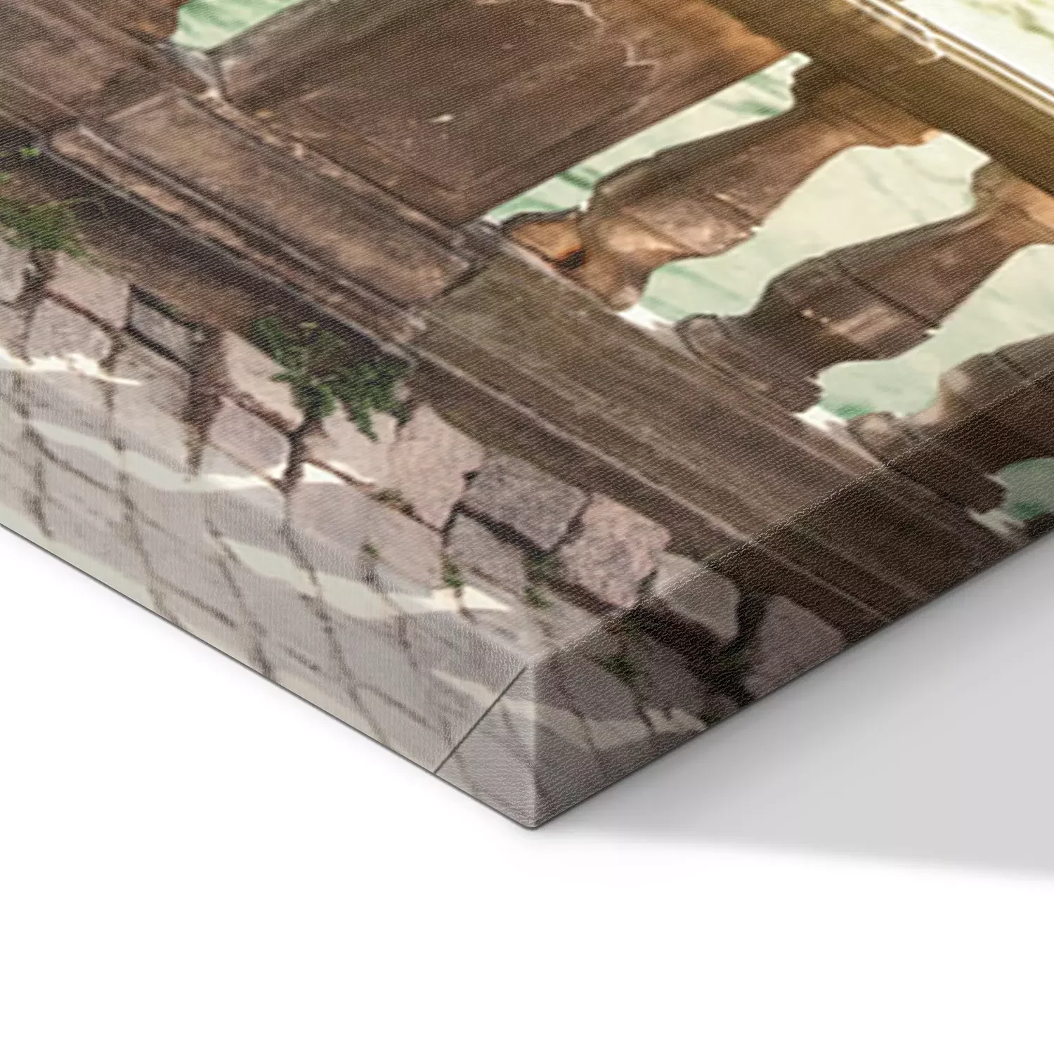 De print wordt aangebracht op hoogwaardig canvas dat op een schildersweefgetouw (spieraam) wordt gespannen. Omdat de print de zijranden bedekt, hoeft het ontwerp niet met een extra kader te worden omlijst. Wij raden ook composities aan die uit meerdere foto's bestaan en zo een coherente compositie vormen.