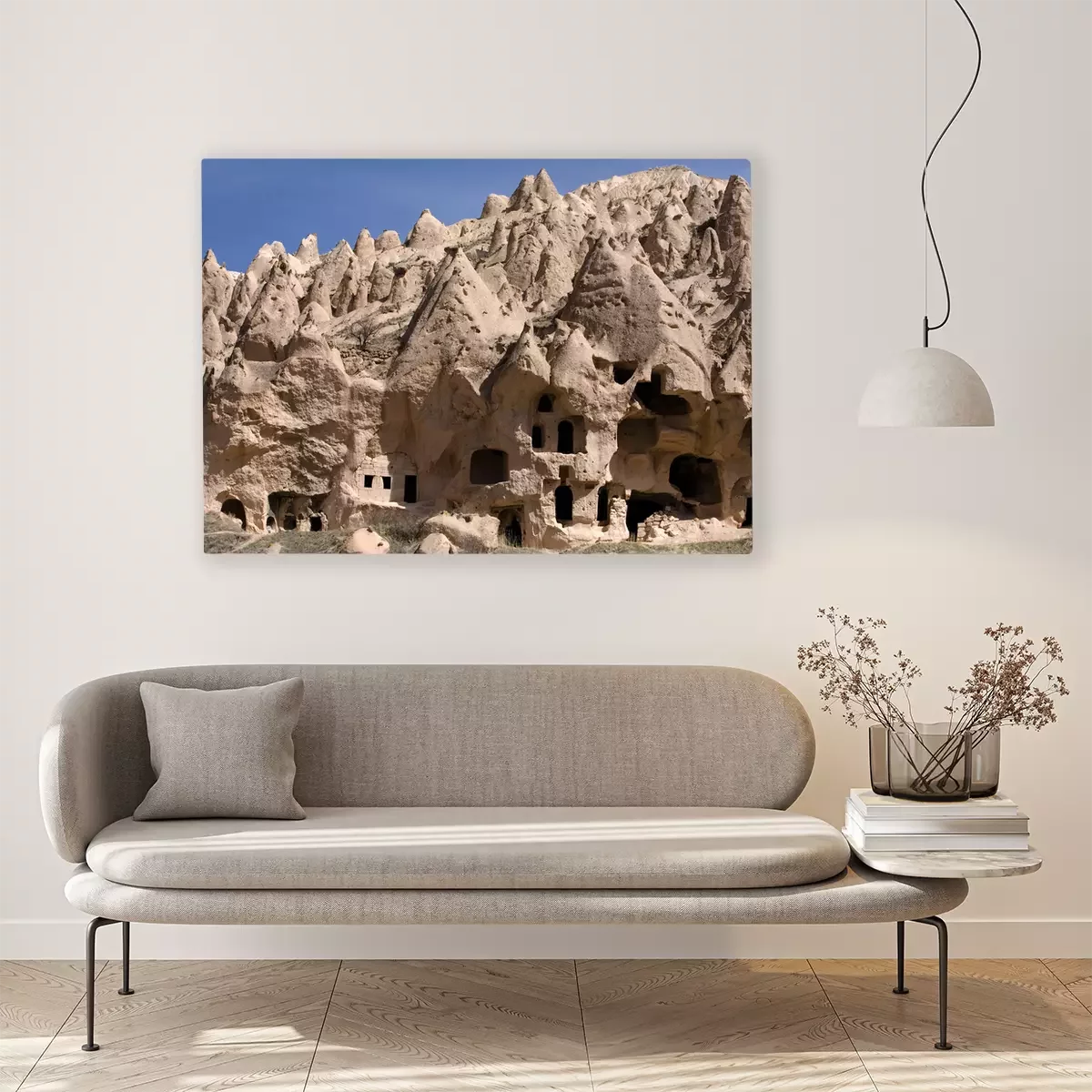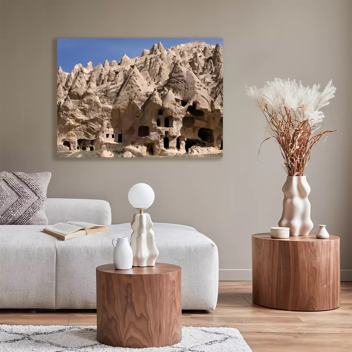 Canvas: Oude cavetown dichtbij Göreme, Cappadocië, Turkije