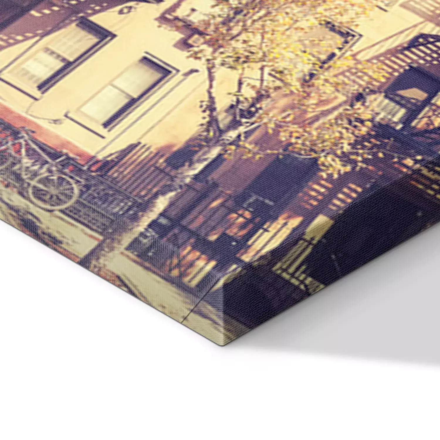 De print wordt aangebracht op hoogwaardig canvas dat op een schildersweefgetouw (spieraam) wordt gespannen. Omdat de print de zijranden bedekt, hoeft het ontwerp niet met een extra kader te worden omlijst. Wij raden ook composities aan die uit meerdere foto's bestaan en zo een coherente compositie vormen.