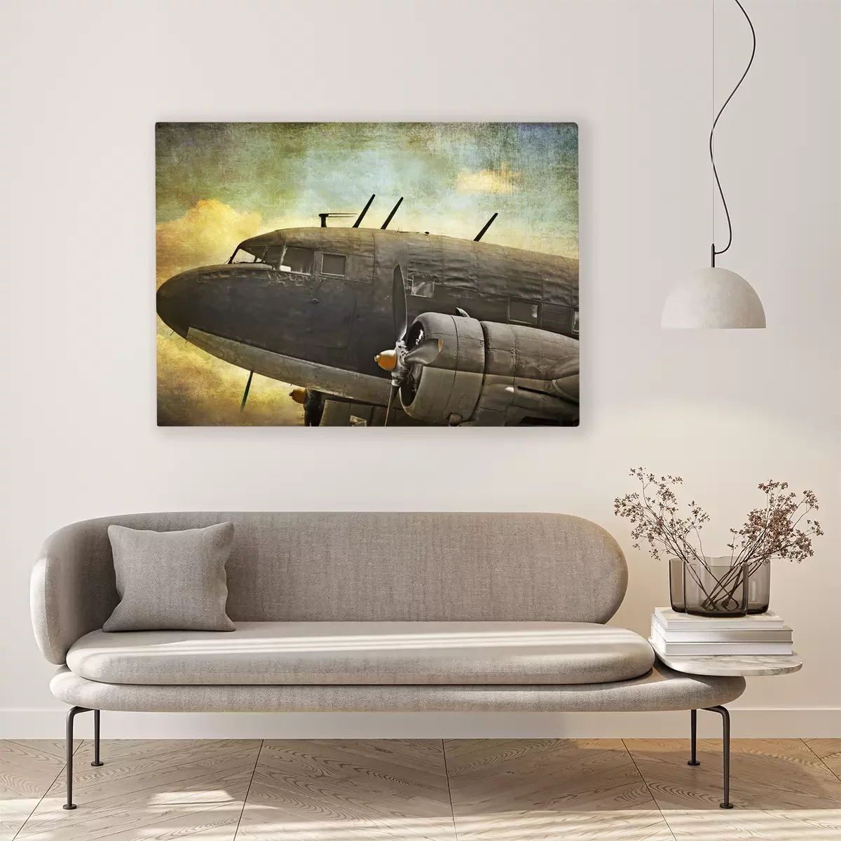 Canvas Oude militaire vliegtuigen, grunge achtergrond