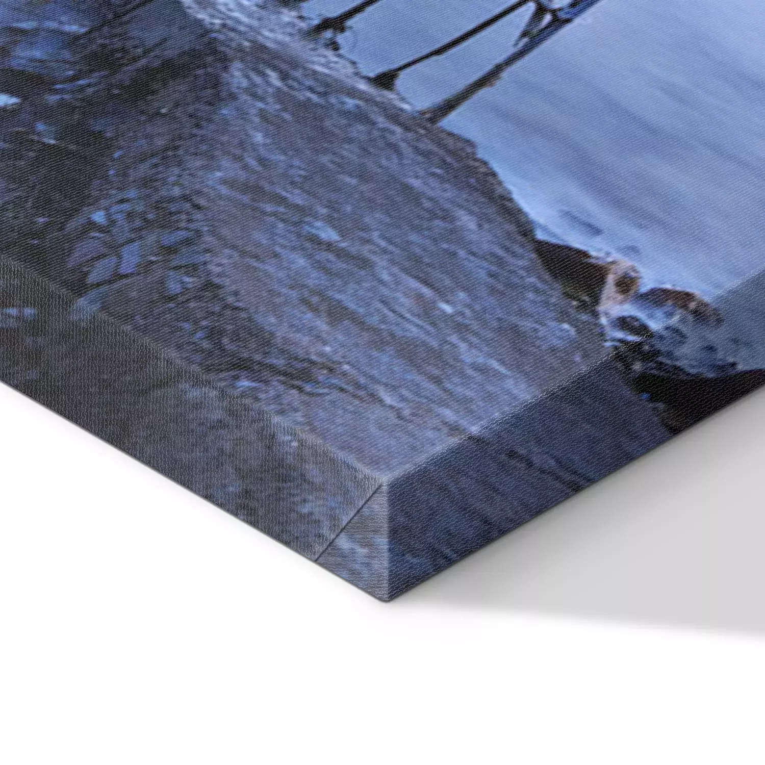 De print wordt aangebracht op hoogwaardig canvas dat op een schildersweefgetouw (spieraam) wordt gespannen. Omdat de print de zijranden bedekt, hoeft het ontwerp niet met een extra kader te worden omlijst. Wij raden ook composities aan die uit meerdere foto's bestaan en zo een coherente compositie vormen.