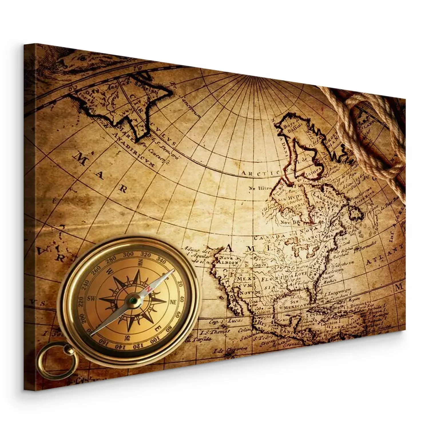 Oud kompas, verrekijker en touwen op een vintage wereldkaart