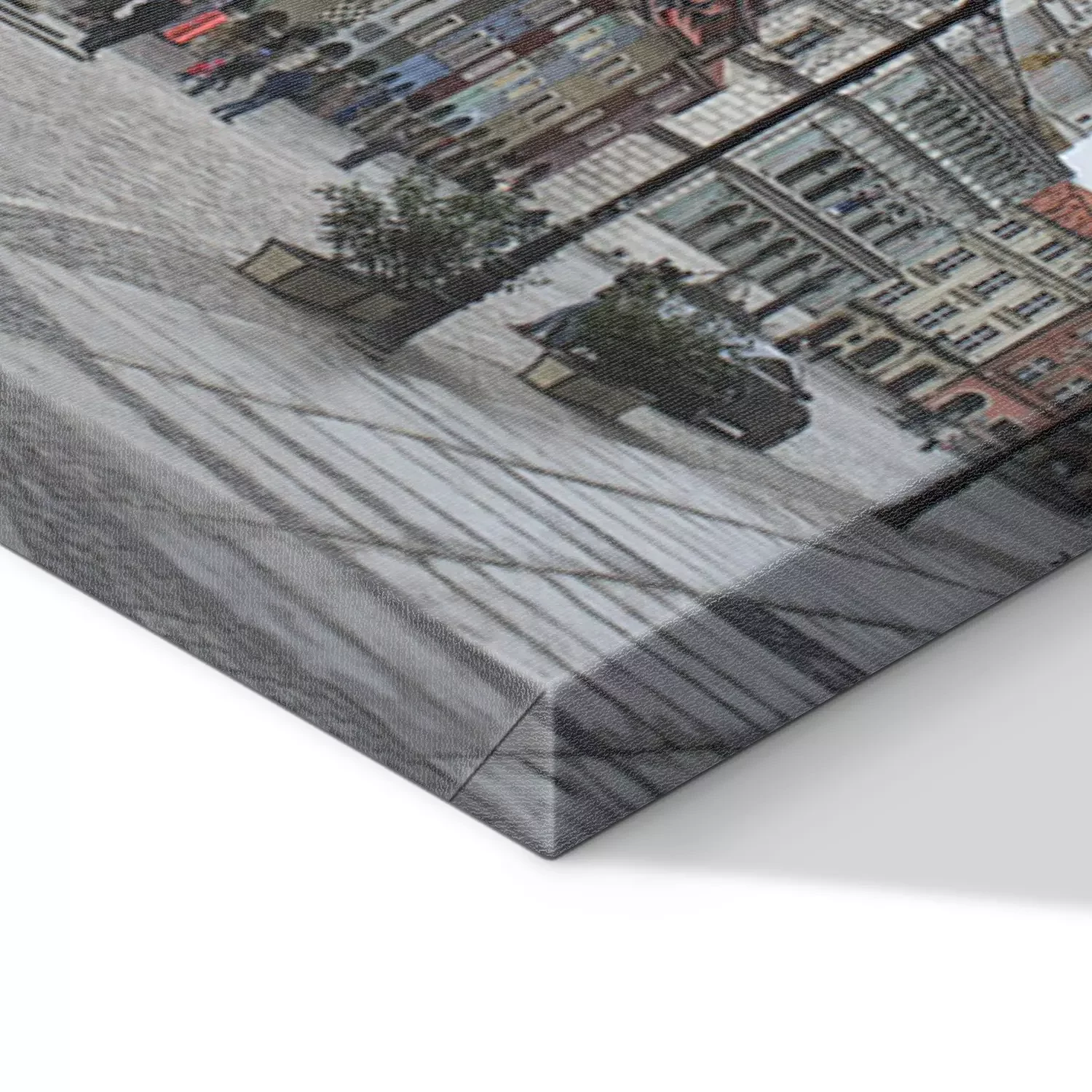 De print wordt aangebracht op hoogwaardig canvas dat op een schildersweefgetouw (spieraam) wordt gespannen. Omdat de print de zijranden bedekt, hoeft het ontwerp niet met een extra kader te worden omlijst. Wij raden ook composities aan die uit meerdere foto's bestaan en zo een coherente compositie vormen.