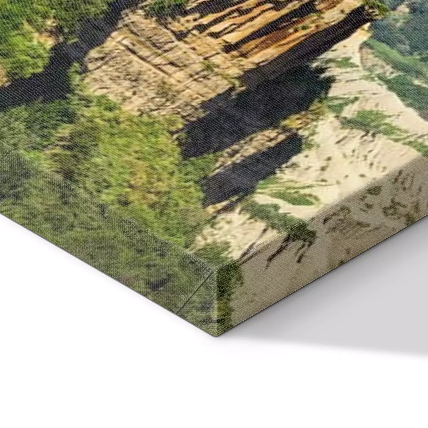 De print wordt aangebracht op hoogwaardig canvas dat op een schildersweefgetouw (spieraam) wordt gespannen. Omdat de print de zijranden bedekt, hoeft het ontwerp niet met een extra kader te worden omlijst. Wij raden ook composities aan die uit meerdere foto's bestaan en zo een coherente compositie vormen.