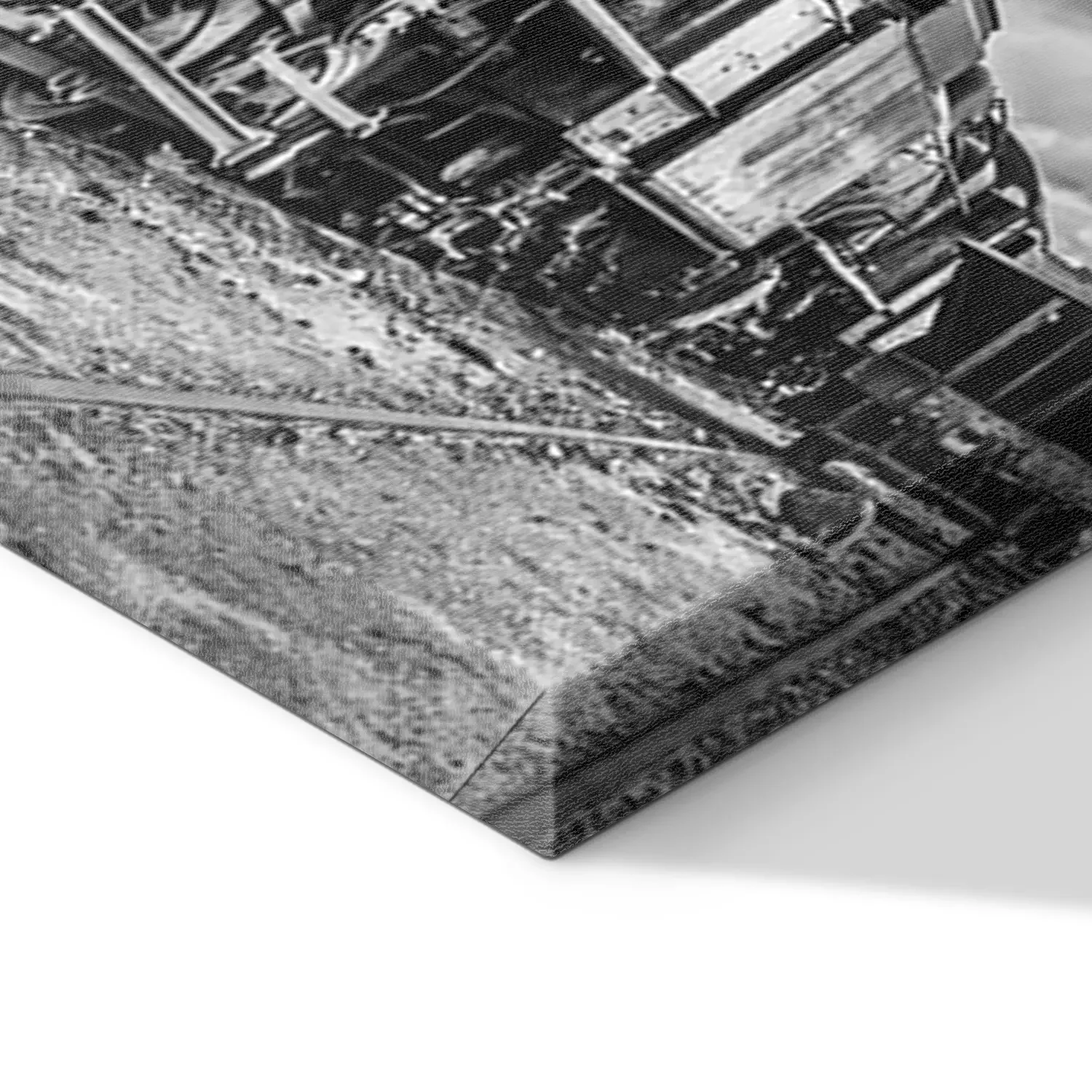 Canvas Oude verlaten locomotief trein, dramatische zwart-wit versie