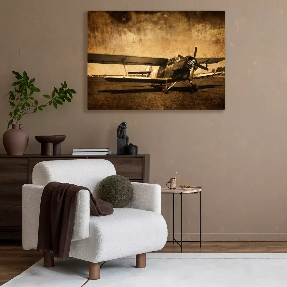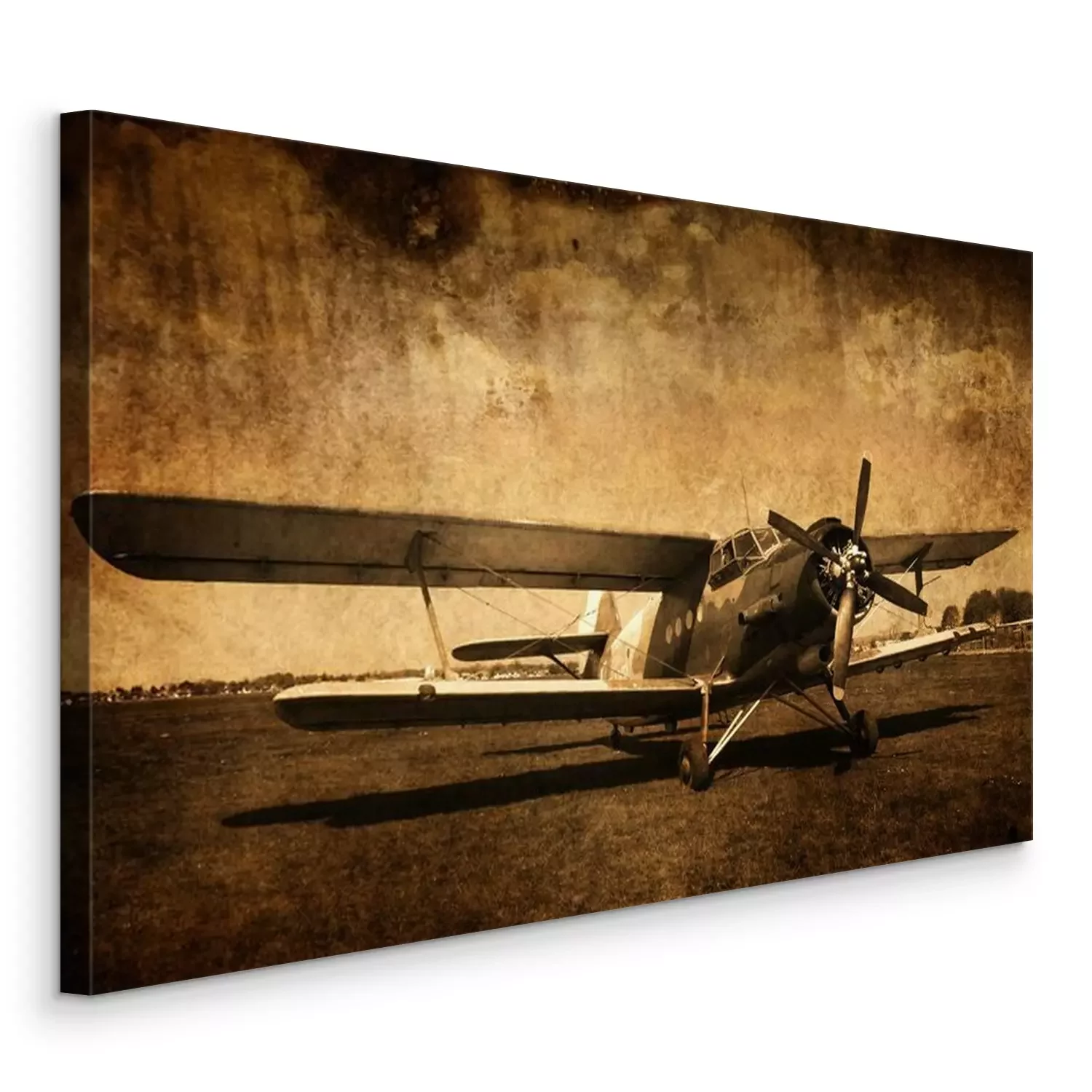 Oud vliegende tweedekker, retro luchtvaart achtergrond