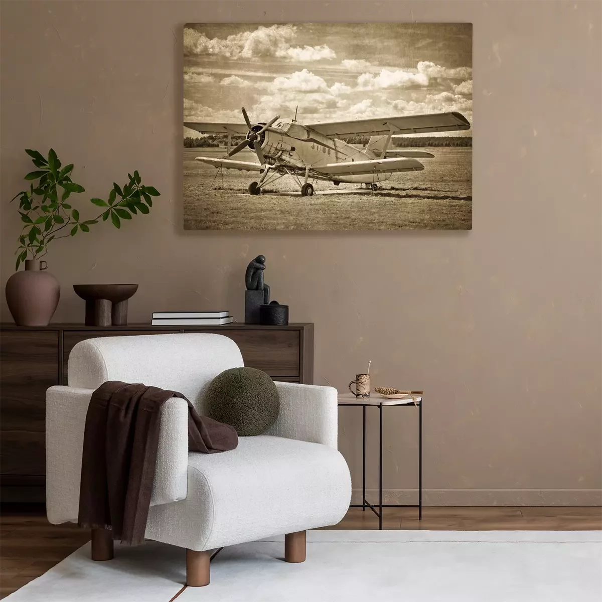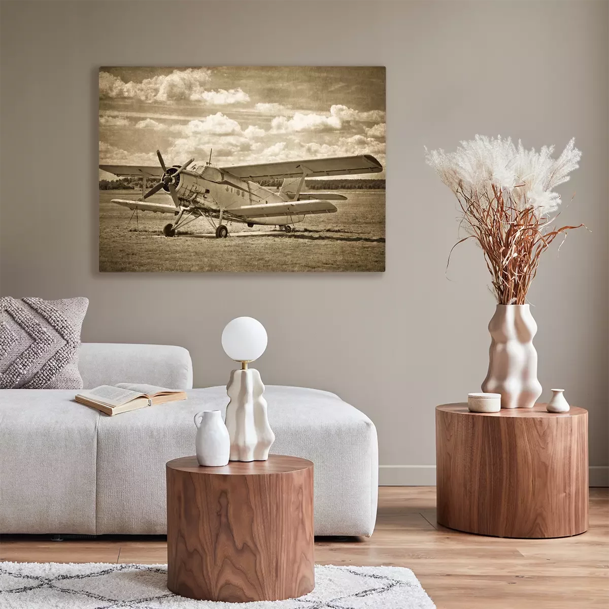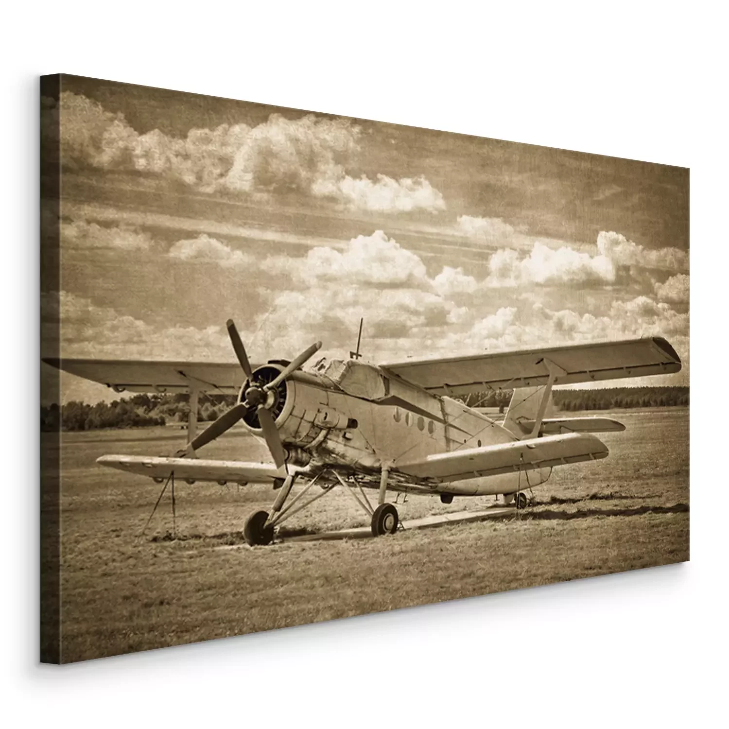 Oud vliegende tweedekker, retro luchtvaart achtergrond