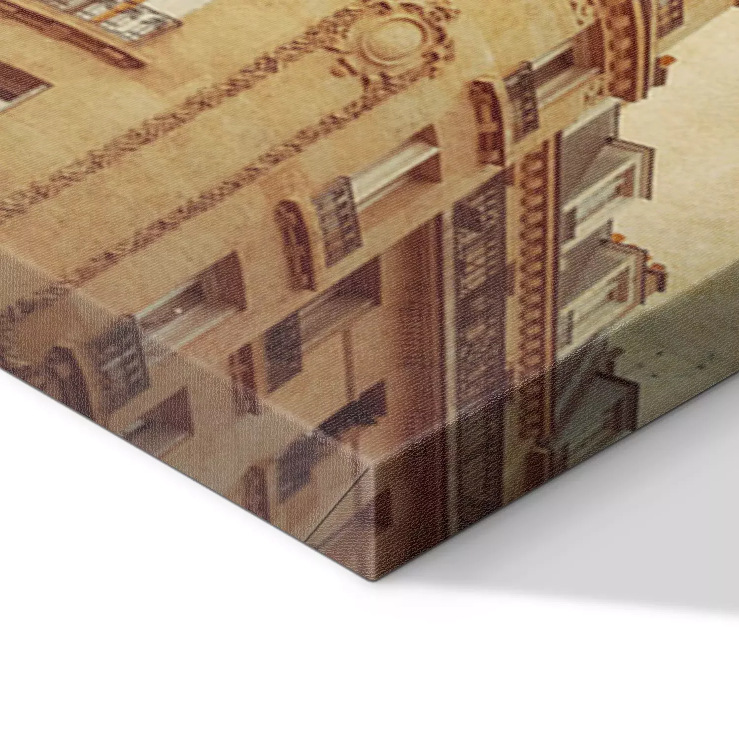 De print wordt aangebracht op hoogwaardig canvas dat op een schildersweefgetouw (spieraam) wordt gespannen. Omdat de print de zijranden bedekt, hoeft het ontwerp niet met een extra kader te worden omlijst. Wij raden ook composities aan die uit meerdere foto's bestaan en zo een coherente compositie vormen.