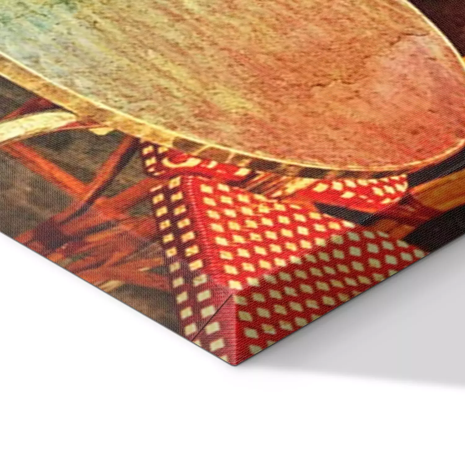 De print wordt aangebracht op hoogwaardig canvas dat op een schildersweefgetouw (spieraam) wordt gespannen. Omdat de print de zijranden bedekt, hoeft het ontwerp niet met een extra kader te worden omlijst. Wij raden ook composities aan die uit meerdere foto's bestaan en zo een coherente compositie vormen.