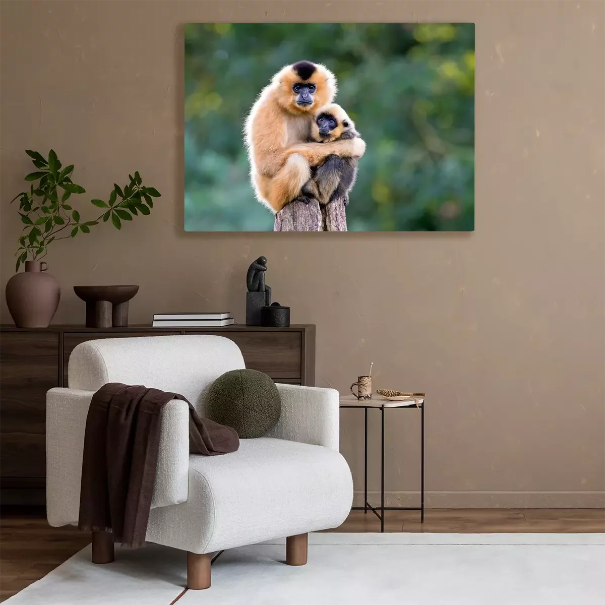 Canvas: Paar gibbons op een boomstam