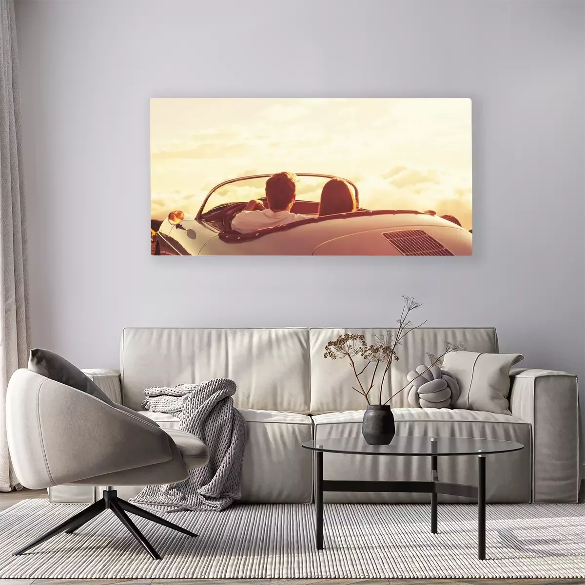 De print wordt aangebracht op hoogwaardig canvas dat op een schildersweefgetouw (spieraam) wordt gespannen. Omdat de print de zijranden bedekt, hoeft het ontwerp niet met een extra kader te worden omlijst. Wij raden ook composities aan die uit meerdere foto's bestaan en zo een coherente compositie vormen.