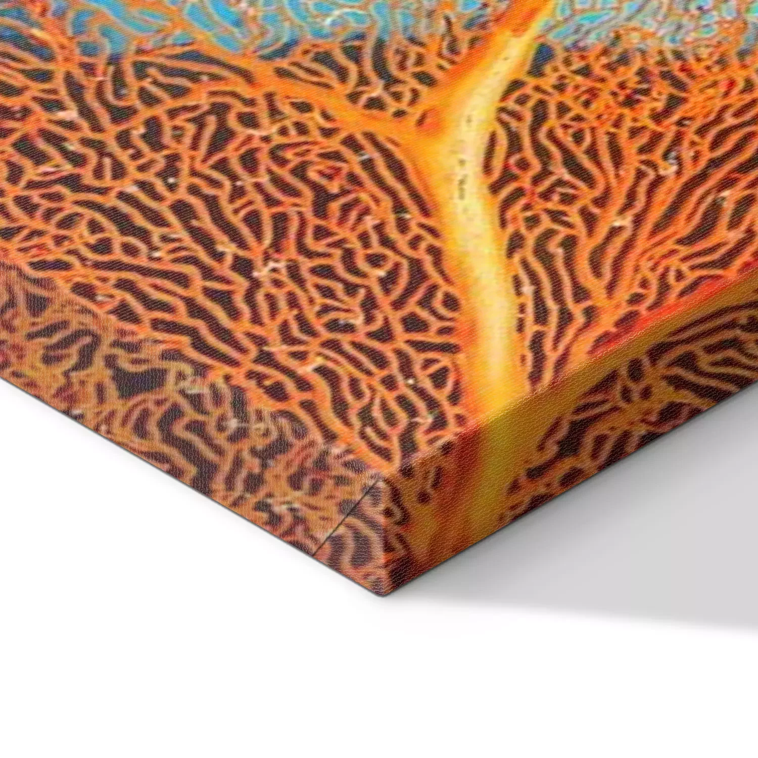 De print wordt aangebracht op hoogwaardig canvas dat op een schildersweefgetouw (spieraam) wordt gespannen. Omdat de print de zijranden bedekt, hoeft het ontwerp niet met een extra kader te worden omlijst. Wij raden ook composities aan die uit meerdere foto's bestaan en zo een coherente compositie vormen.