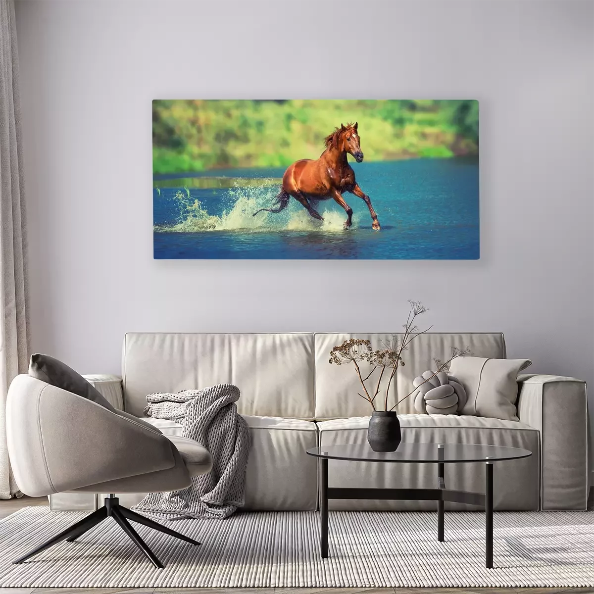 De print wordt aangebracht op hoogwaardig canvas dat op een schildersweefgetouw (spieraam) wordt gespannen. Omdat de print de zijranden bedekt, hoeft het ontwerp niet met een extra kader te worden omlijst. Wij raden ook composities aan die uit meerdere foto's bestaan en zo een coherente compositie vormen.