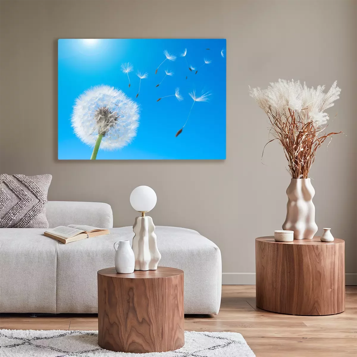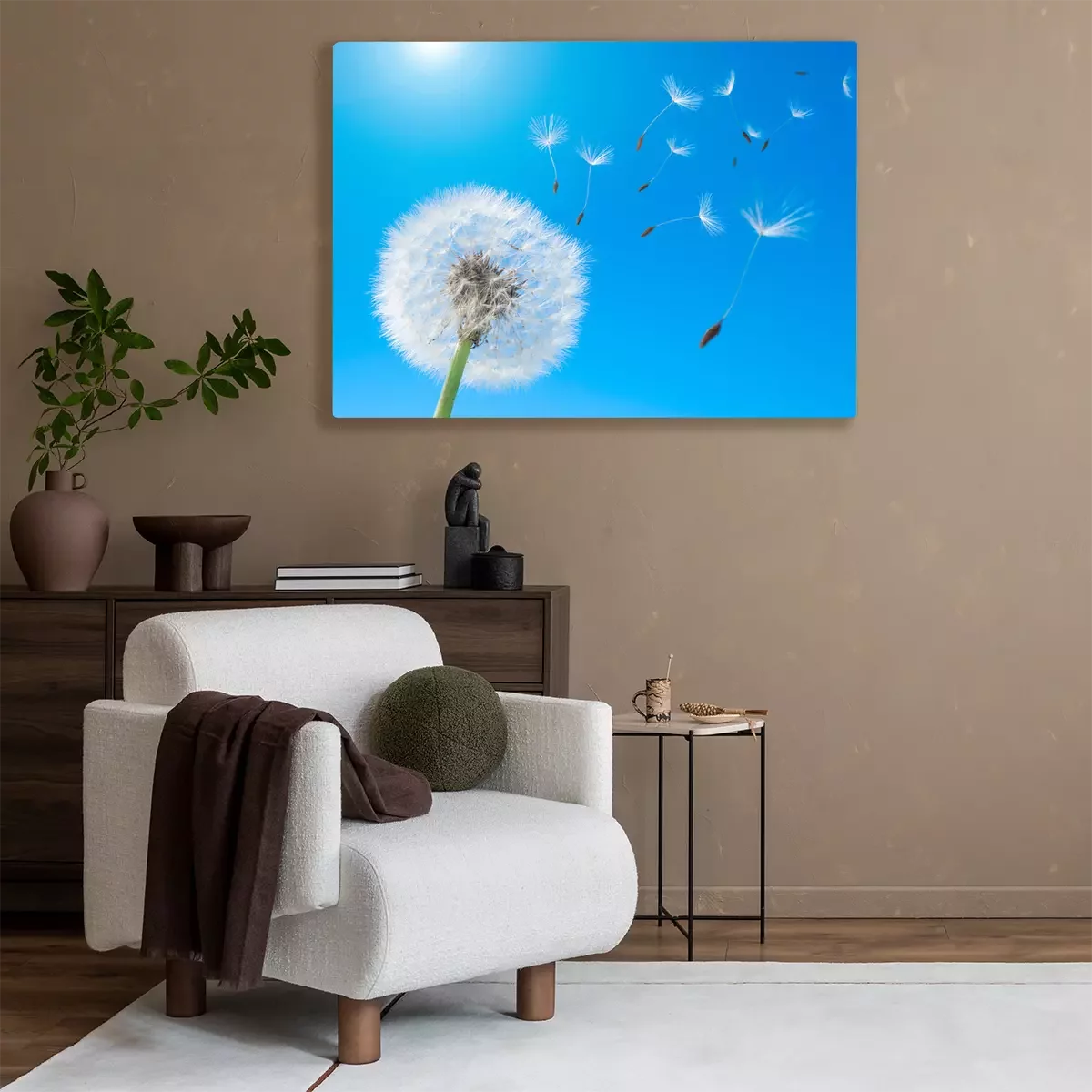 Canvas: Paardebloem met verspreide zaden