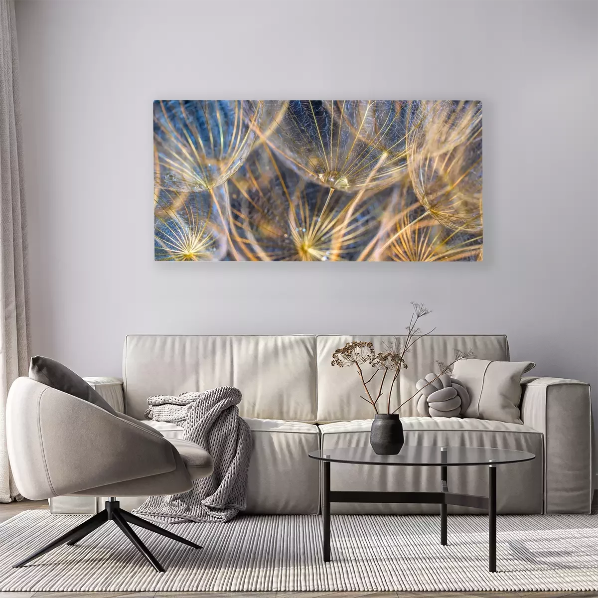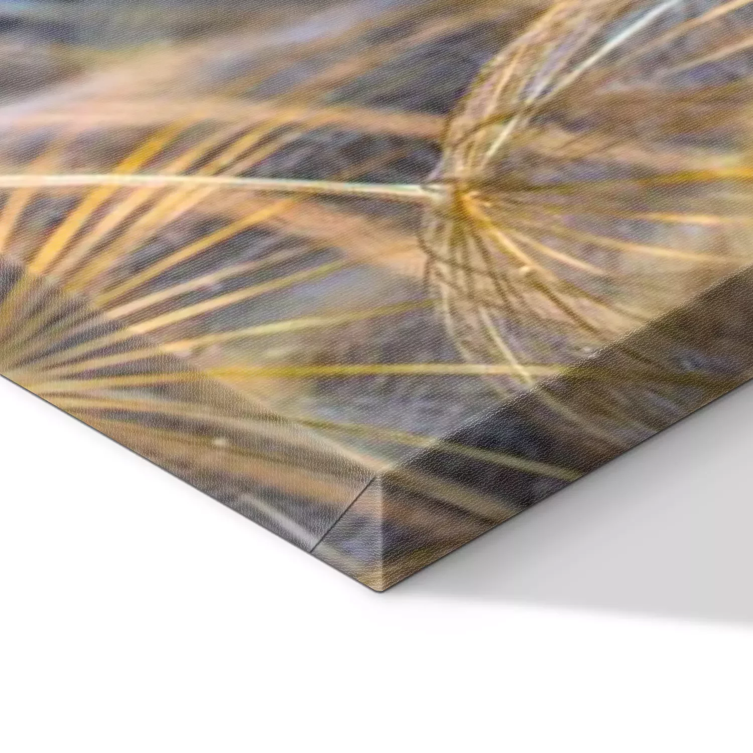 De print wordt aangebracht op hoogwaardig canvas dat op een schildersweefgetouw (spieraam) wordt gespannen. Omdat de print de zijranden bedekt, hoeft het ontwerp niet met een extra kader te worden omlijst. Wij raden ook composities aan die uit meerdere foto's bestaan en zo een coherente compositie vormen.