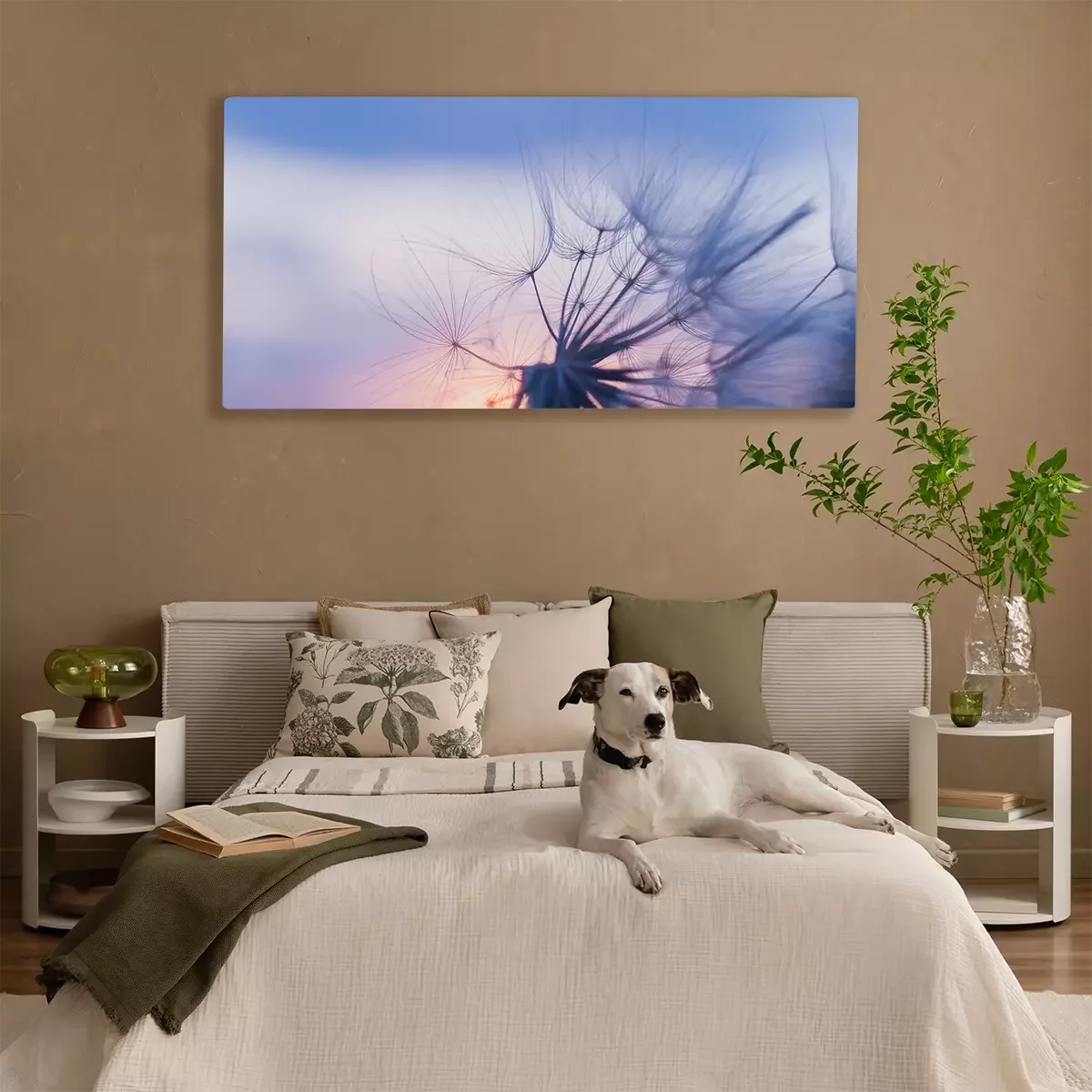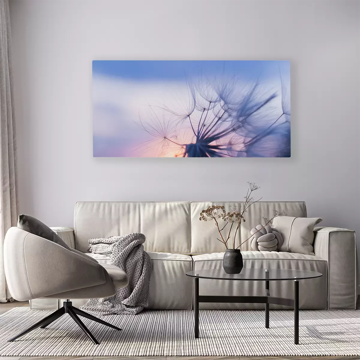 Canvas: Paardebloem tegen de achtergrond van de avondlucht