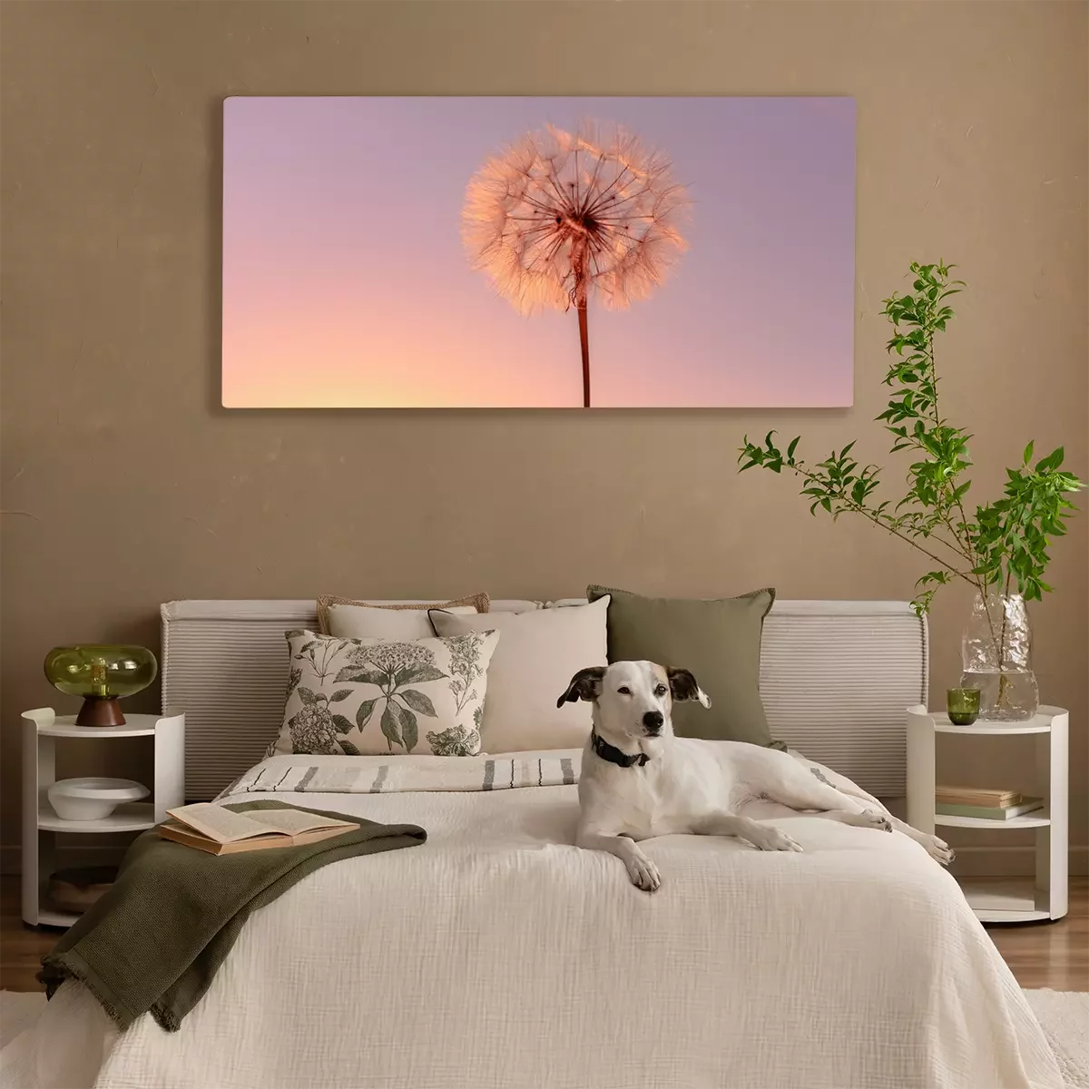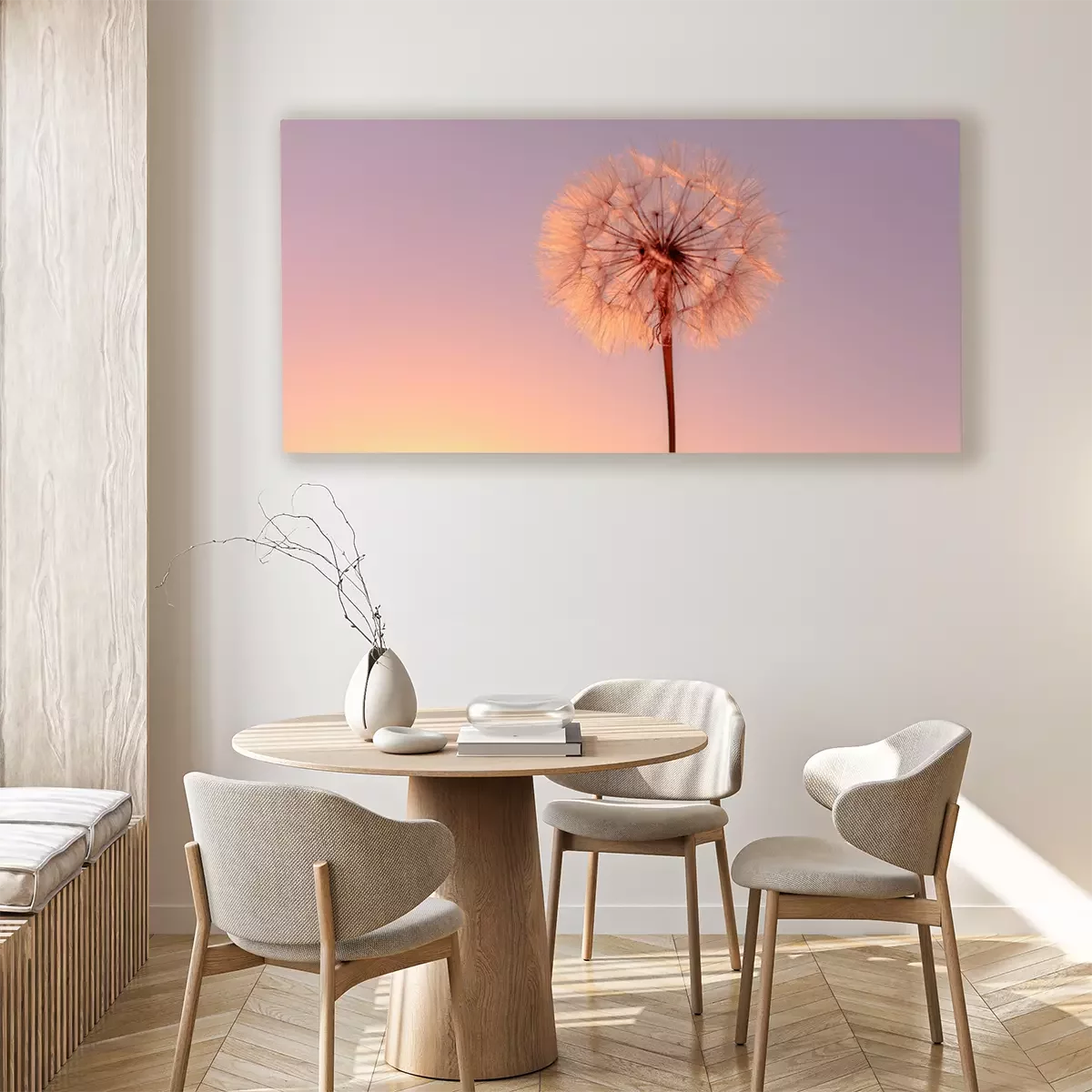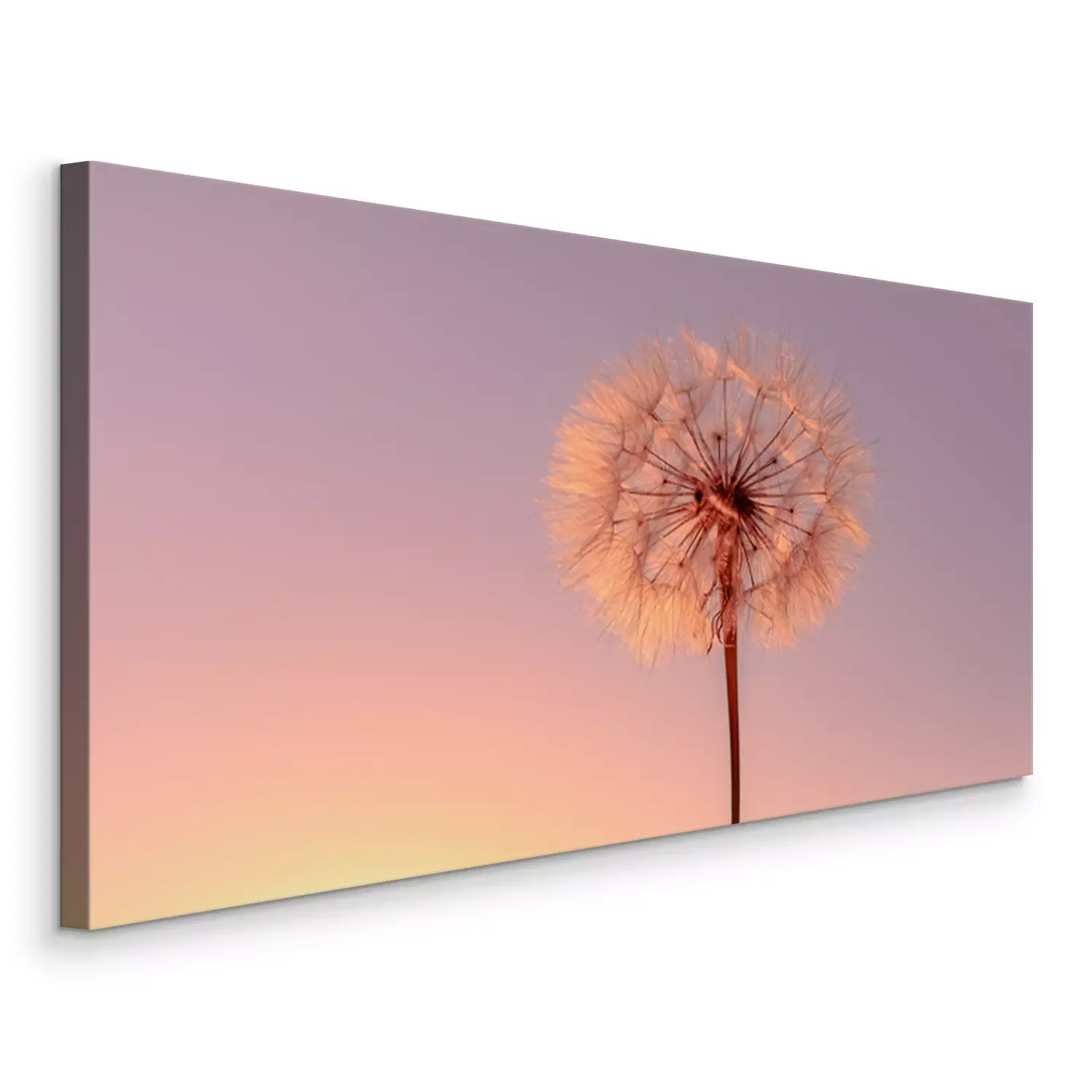 Canvas: Paardebloem tegen de achtergrond van een pastelkleurige hemel